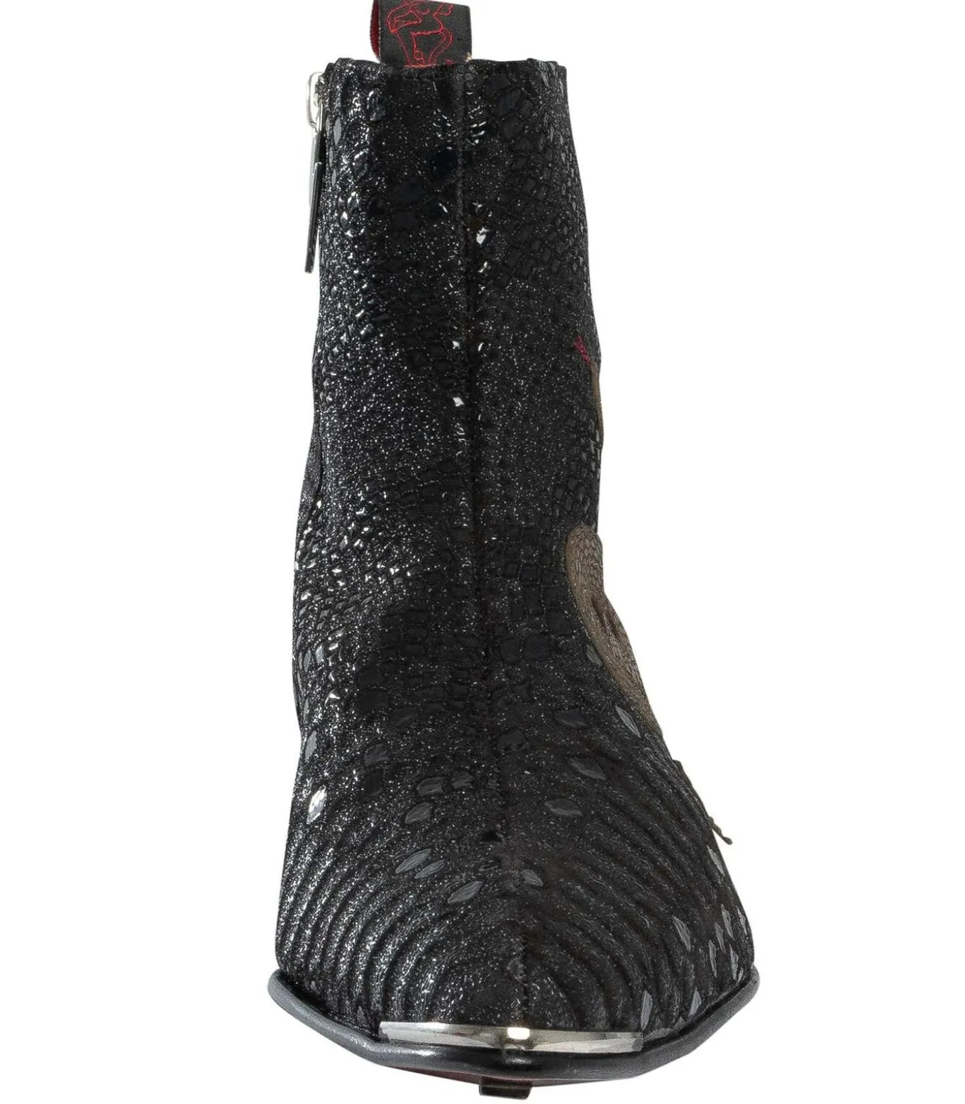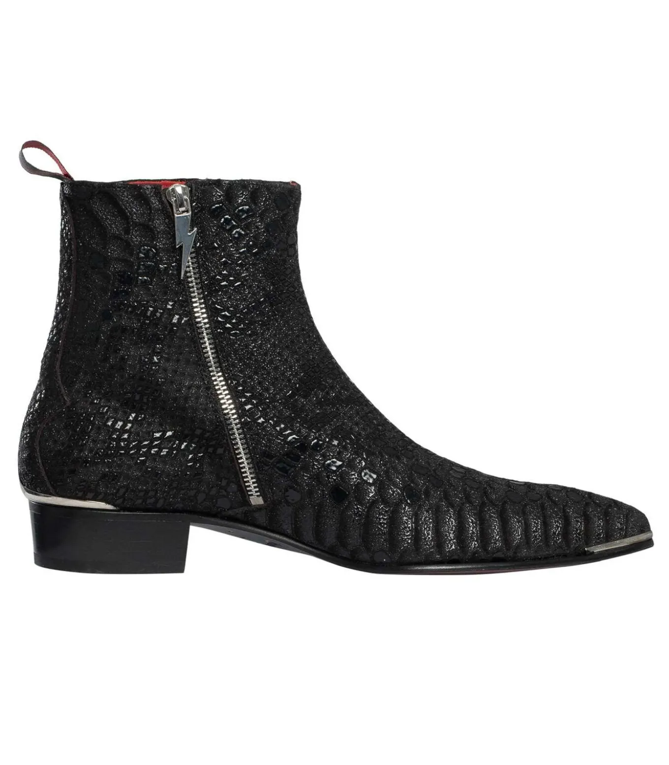 De Jeffery West Manic Debussy Chelsea Boots in zwart stralen verfijning en individualiteit uit en brengen vakmanschap in schoenen. Ze zijn vakkundig gemaakt van hoogwaardig leer en hebben een gedetailleerde slangenprint aan de zijkant en de kenmerkende merkzool. De bliksemschichtrits zorgt voor een opvallende afwerking, die Jeffery Wests avant–garde stijl weerspiegelt. Deze Chelsea boots zijn ontworpen voor comfort en flair en combineren klassieke elegantie met een gedurfd karakter. Ze zijn een uitstekende keuze voor mannen die op zoek zijn naar verfijnd vakmanschap met een moderne, rebelse touch.