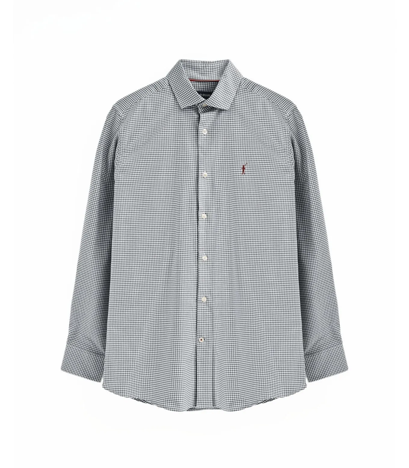 Herenhemd met vichy–ruitpatroon, slim fit en Italiaanse kraag. Gemaakt van Oxford–katoen met een klassieke look en een unieke twist. Ideaal voor eender welke gelegenheid.