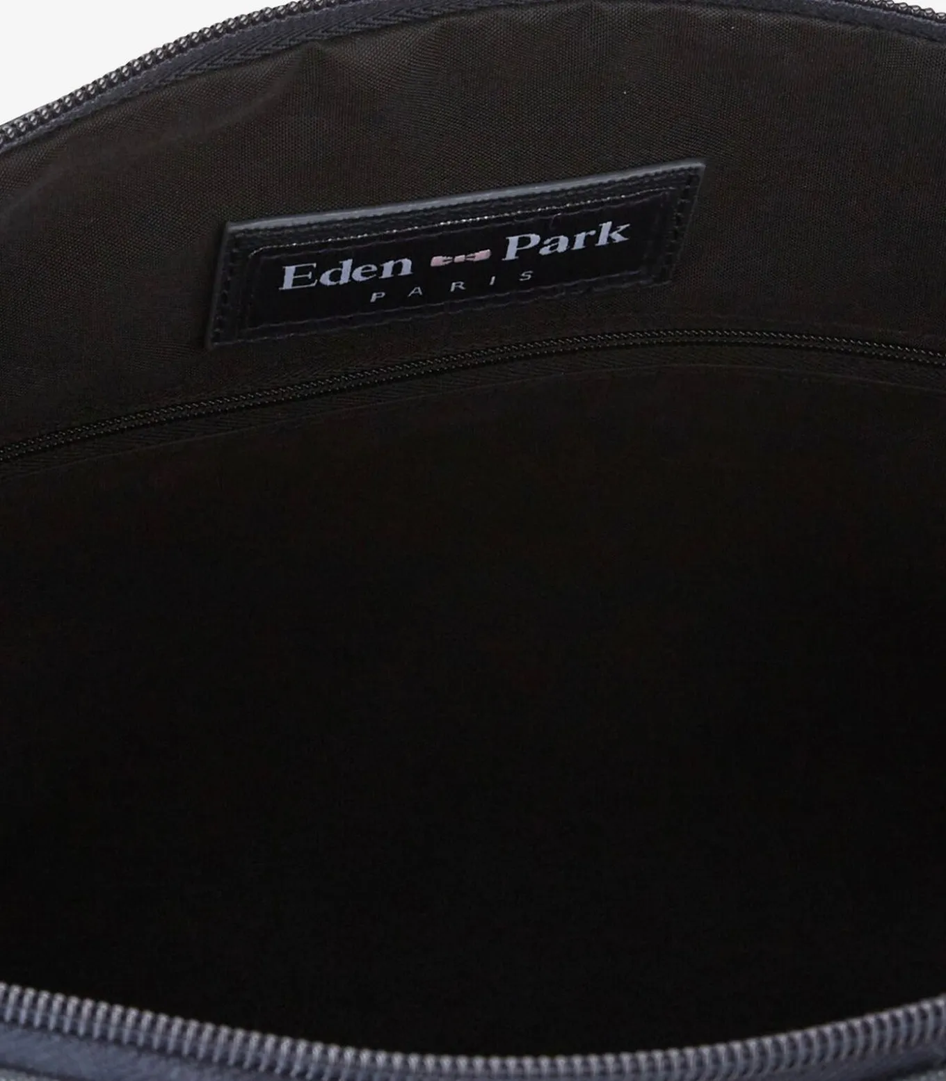 in korrelig leer 2 reliëf eden park handgrepen in het midden 4 decoratieve eden park gegraveerde metalen knoppen aan de buitenkant hoofdcompartiment met dubbele zip sluiting 1 ritszak en twee patchzakken binnen verstelbare en afneembare