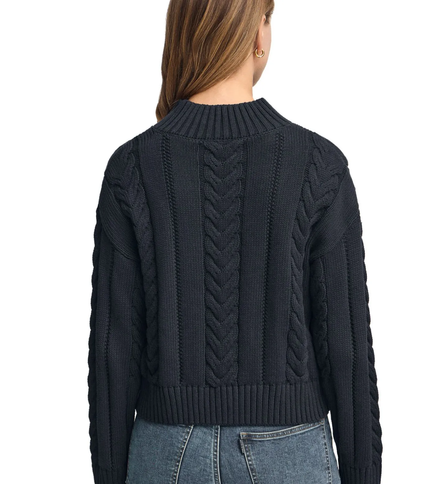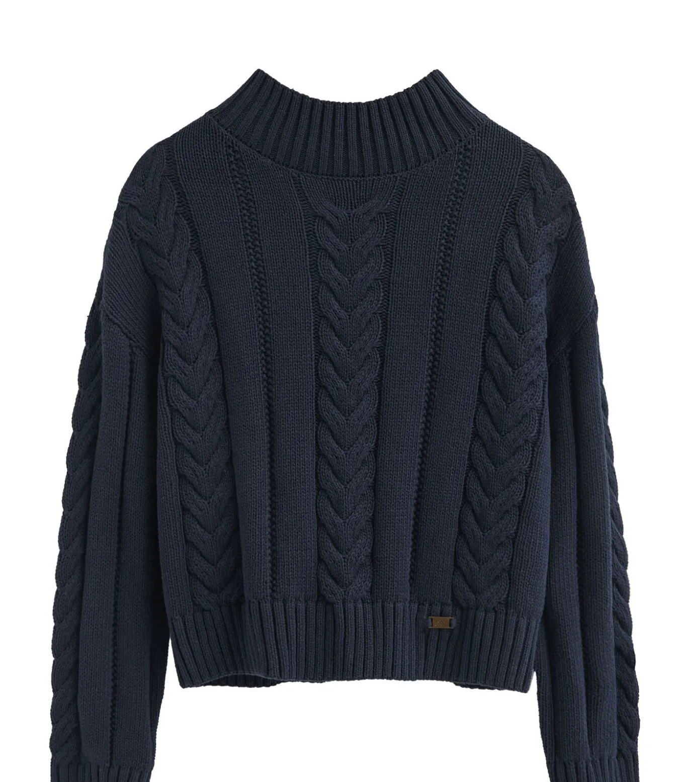 Damestrui van grof breisel met opstaande kraag en loose fit, ideaal op koude dagen. Gemaakt van katoen met klassiek kabelmotief – heerlijk warm, comfy en helemaal on–trend.
