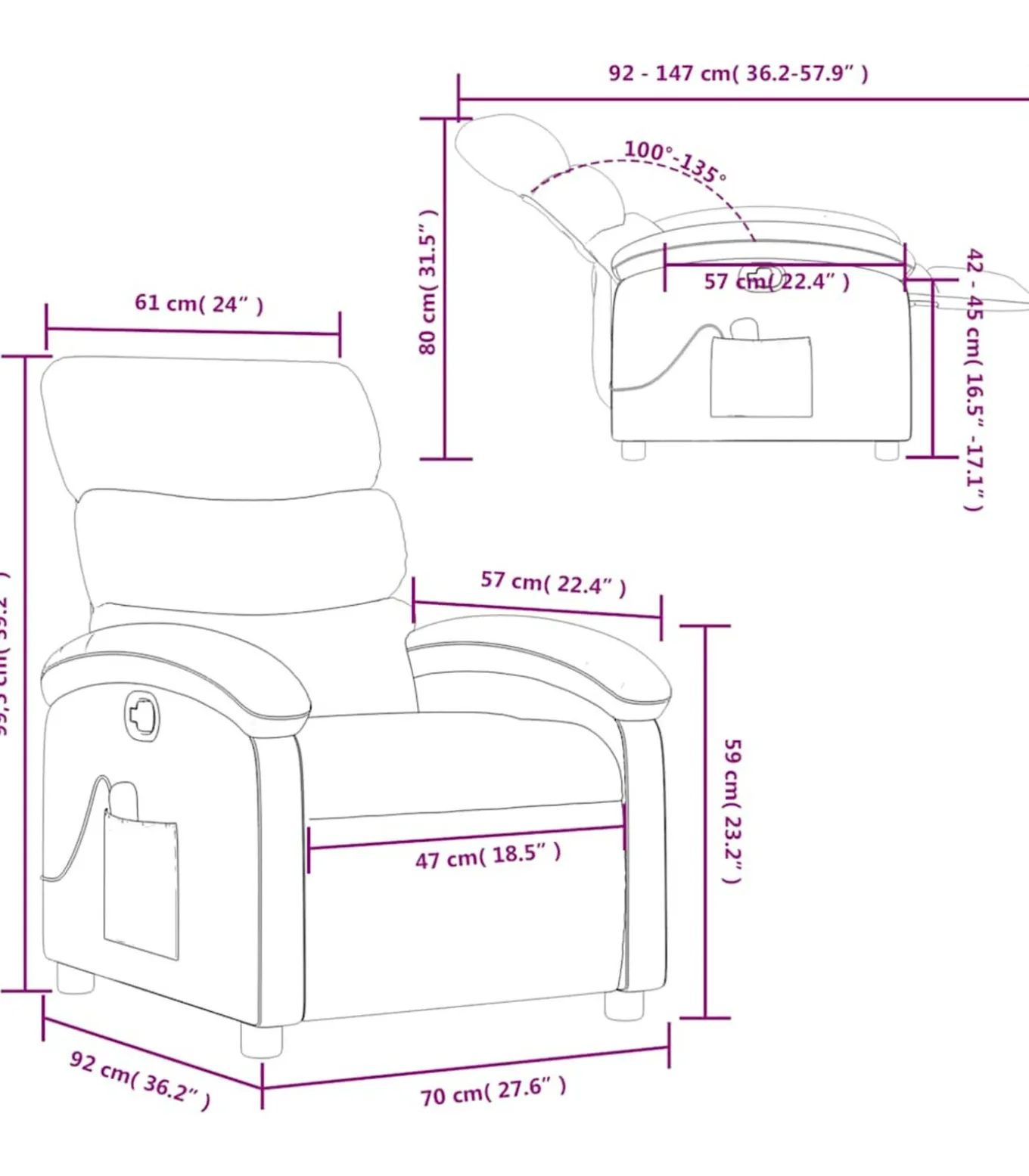 Hoogte armleuning vanaf de grond: 59 cm