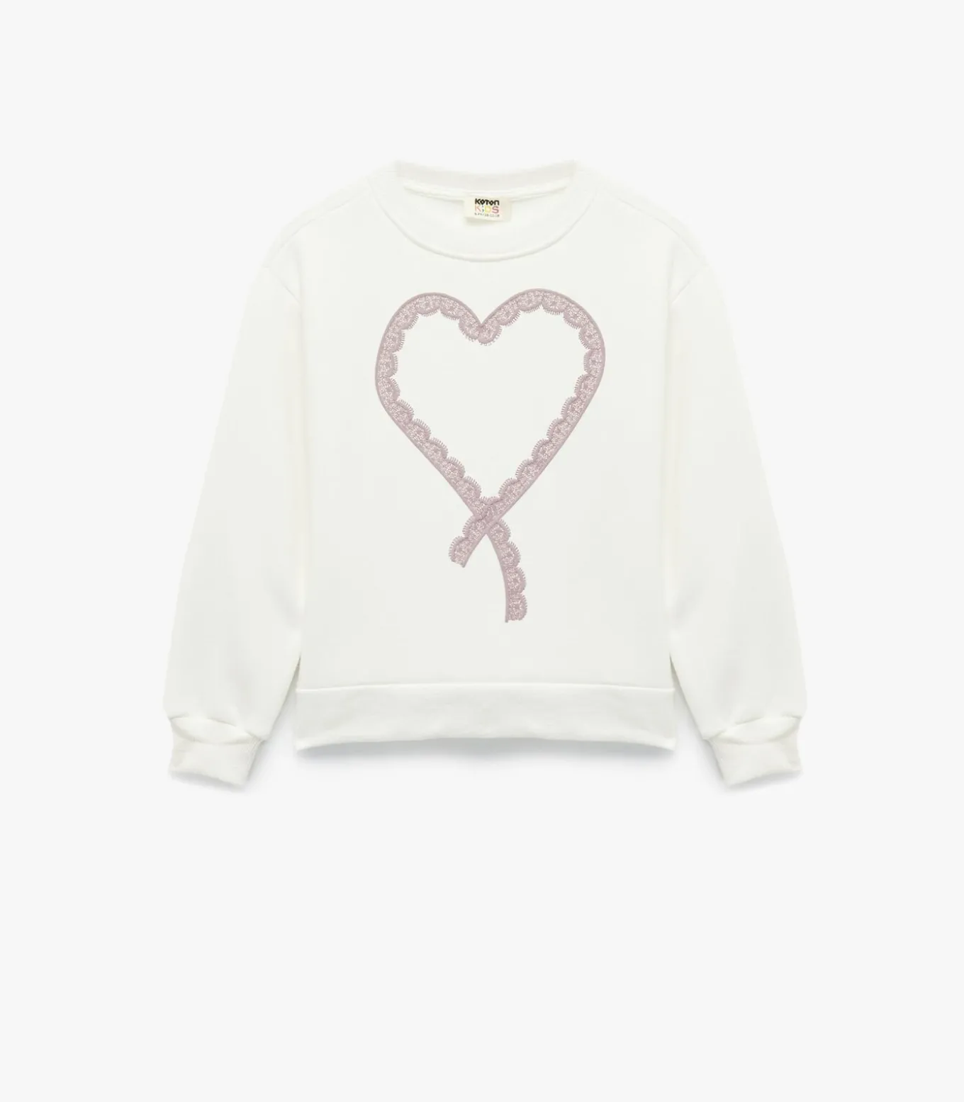 Dit schattige meisjes sweatshirt biedt ultiem comfort met zijn zachte, warme stof. De ronde hals en lange mouwen zorgen voor een klassieke look, terwijl het hartvormige detail op de voorkant een speelse twist toevoegt. Perfect te combineren met rokken en broeken voor een kleurrijke dagelijkse outfit. Een essentiële toevoeging aan de garderobe van elk kind voor een gezellige en stijlvolle look!