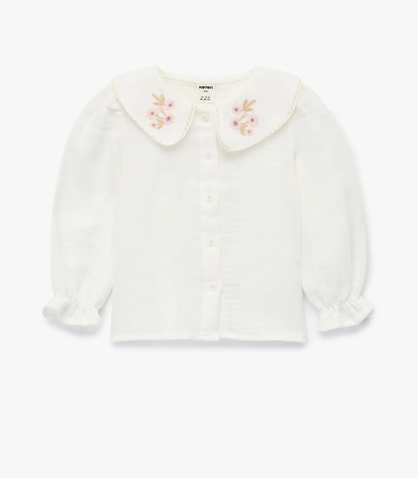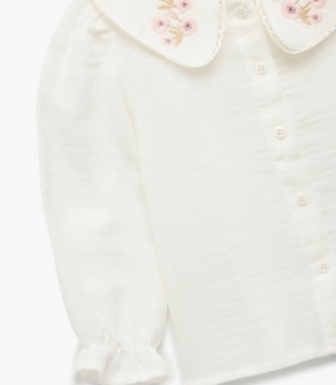 Deze schattige meisjesblouse voegt een vleugje elegantie toe aan elke outfit. Gemaakt van zacht katoen voor comfort en duurzaamheid. De lange mouwen en de gebeide kraag met bloemen zorgen voor een klassieke uitstraling. Perfect voor dagelijks gebruik dankzij de praktische knoopsluiting.