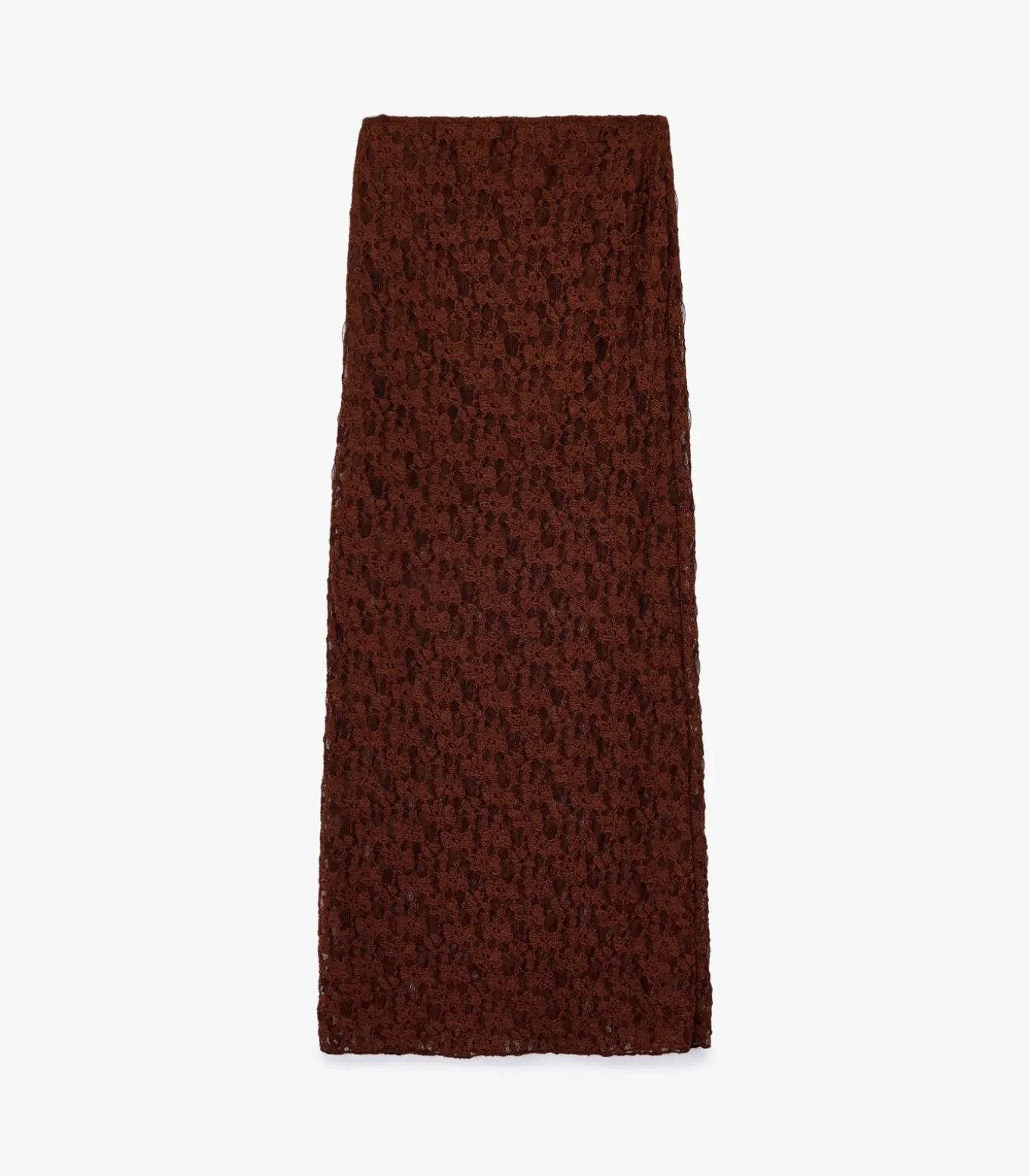 Deze elegante midi–rok met hoge taille is perfect voor zowel alledaags gebruik als formele gelegenheden. De kanttextuur voegt een vleugje verfijning toe, terwijl de slanke pasvorm je silhouet flatteert. Combineer met een blouse en hakken voor een chique kantoorlook of met een satijnen top voor speciale gelegenheden.