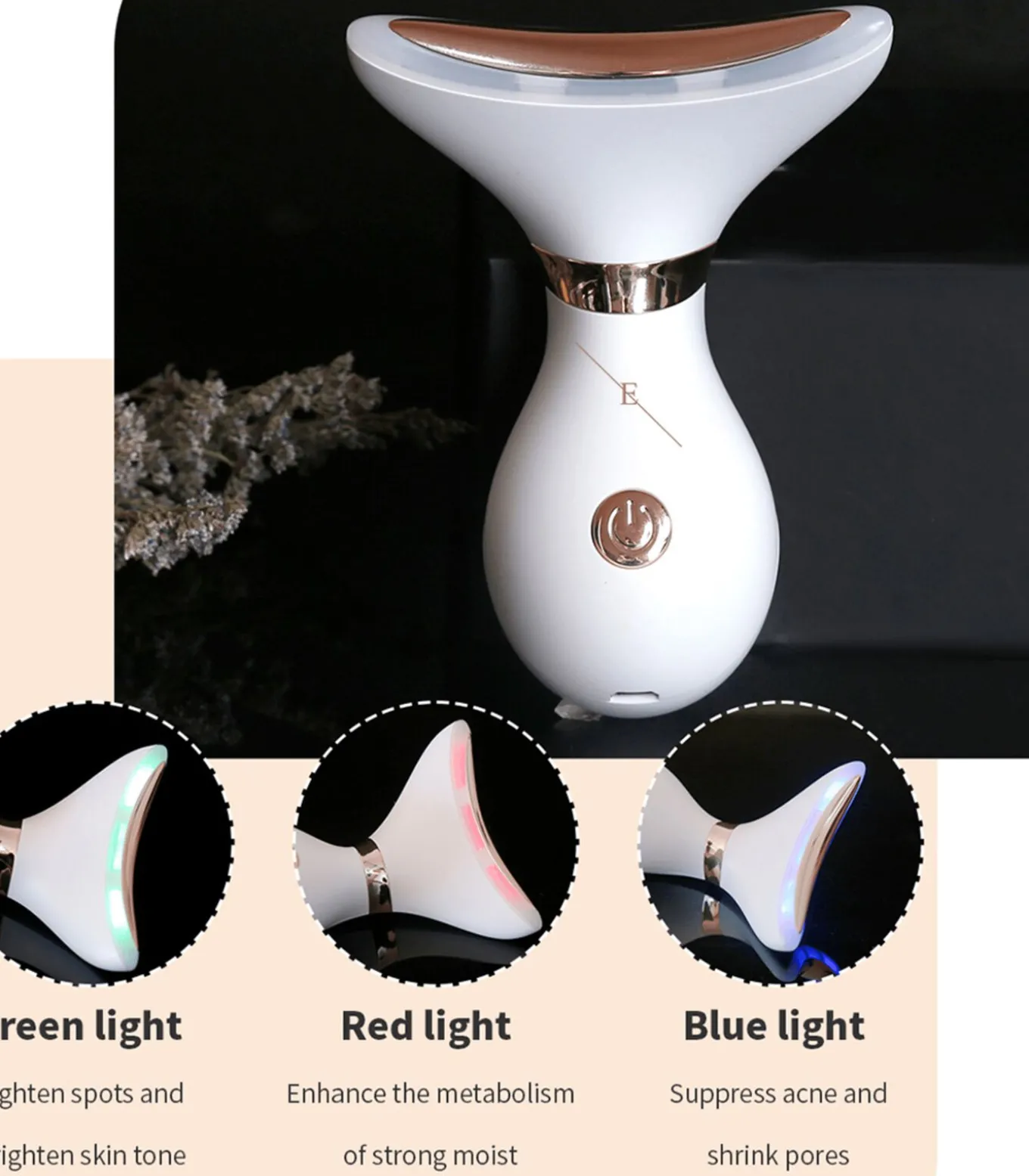 Dit revolutionaire apparaat maakt gebruik van geavanceerde LED lichttherapie om de huid rond de nek en kaaklijn te herstellen en strakker te maken. Het is een niet–invasief systeem ontworpen om collageenproductie te stimuleren en de verschijning van rimpels en lijntjes te verminderen, wat resulteert in een jeugdiger en stralender complexie. De gestroomlijnde massagelade is speciaal ontworpen voor de nek en kaaklijn. Voor de hersteling van de huid op de nek verwarmt de massagelade de huid tot 45°C voor huidherstel. Er zijn drie kleurenlamp– en geluidsmodi van laag, gemiddeld en hoog, gecombineerd met blauwe, groene en rode lichtmassage om bloedcirculatie en huidherstel te bevorderen. Oplaadbaar via USB–kabel, veilig en milieuvriendelijk. Mini en draagbaar, gebruik overal en altijd.”Deze beschrijving omvat de belangrijkste kenmerken en voordelen van het product, zoals het stimuleren van collageenproductie, het verminderen van de verschijning van rimpels en lijntjes, en het verbeteren van de textuur en toon van de huid voor een meer jongere uitstraling. Het benadrukt ook de praktische aspecten zoals de oplaadbare USB–kabel en de portabiliteit van het apparaat, waardoor het gemakkelijk te gebruiken is op elk moment en overal.