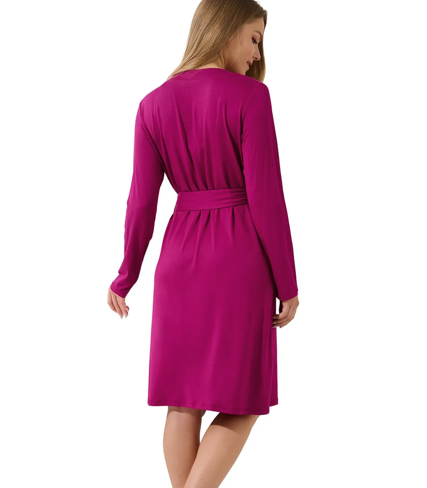 Lengte ca. 100 cm. Tijdloze, romantische, comfortabele en elegante pyjama. De stukken zijn praktisch en eenvoudig getailleerd, waardoor het vrouwelijke silhouet wordt benadrukt. De stoffen zijn zacht, ademend en vooral comfortabel; viscose en elastaan zorgen voor een zacht gevoel tegen de huid.[De badjas wordt apart verkocht. De chemise en andere accessoires die het model op de foto’s draagt, zijn niet inbegrepen].