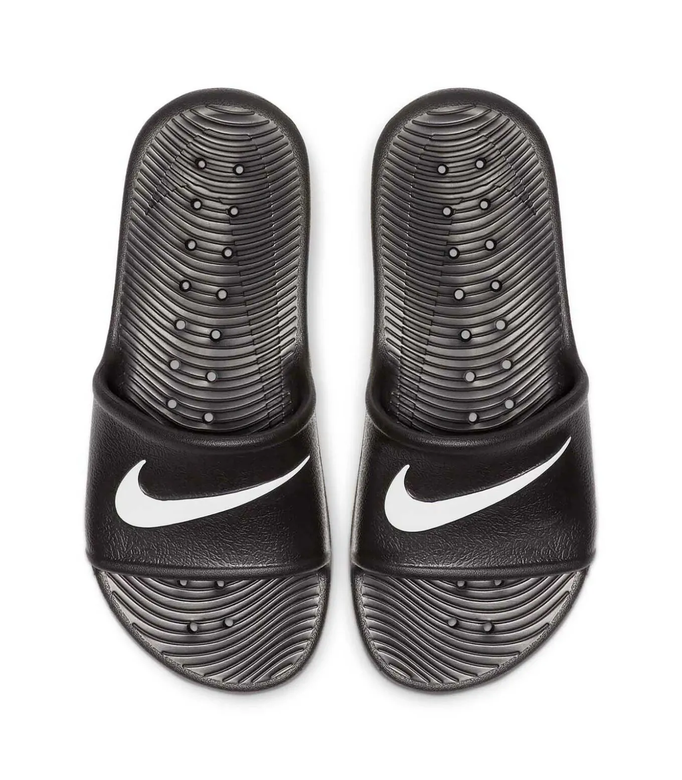 Kleur: zwart. Materiaal: synthetisch. Details: contrasterend Nike–logo, ergonomisch voetbed met antisliptextuur. Zool: duurzaam rubber voor extra duurzaamheid. Pasvorm: praktisch en comfortabel, ideaal voor op het strand, bij het zwembad of voor dagelijks gebruik. Gebruik: perfect voor actieve kinderen, geschikt voor zomer– en buitenactiviteiten dankzij het lichte en duurzame ontwerp.