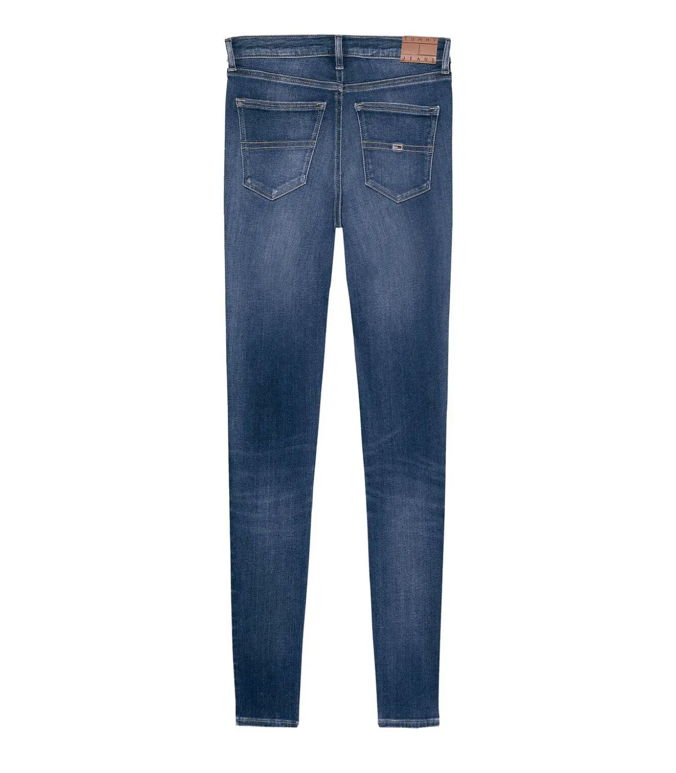 * Kleur: Dark Denim * Lengte: Regular * Pasvorm: Skinny fit * Sluiting: Rits en knoop * Details: Medium taille, kreuk– en vervaging aan de voorkant, Tommy Jeans–vlagpatch op het muntzakje en op de achterzak * Gebruik: Ideaal voor het creëren van veelzijdige outfits, perfect met zowel sneakers als enkellaarsjes, ze passen gemakkelijk bij casual shirts of truien.