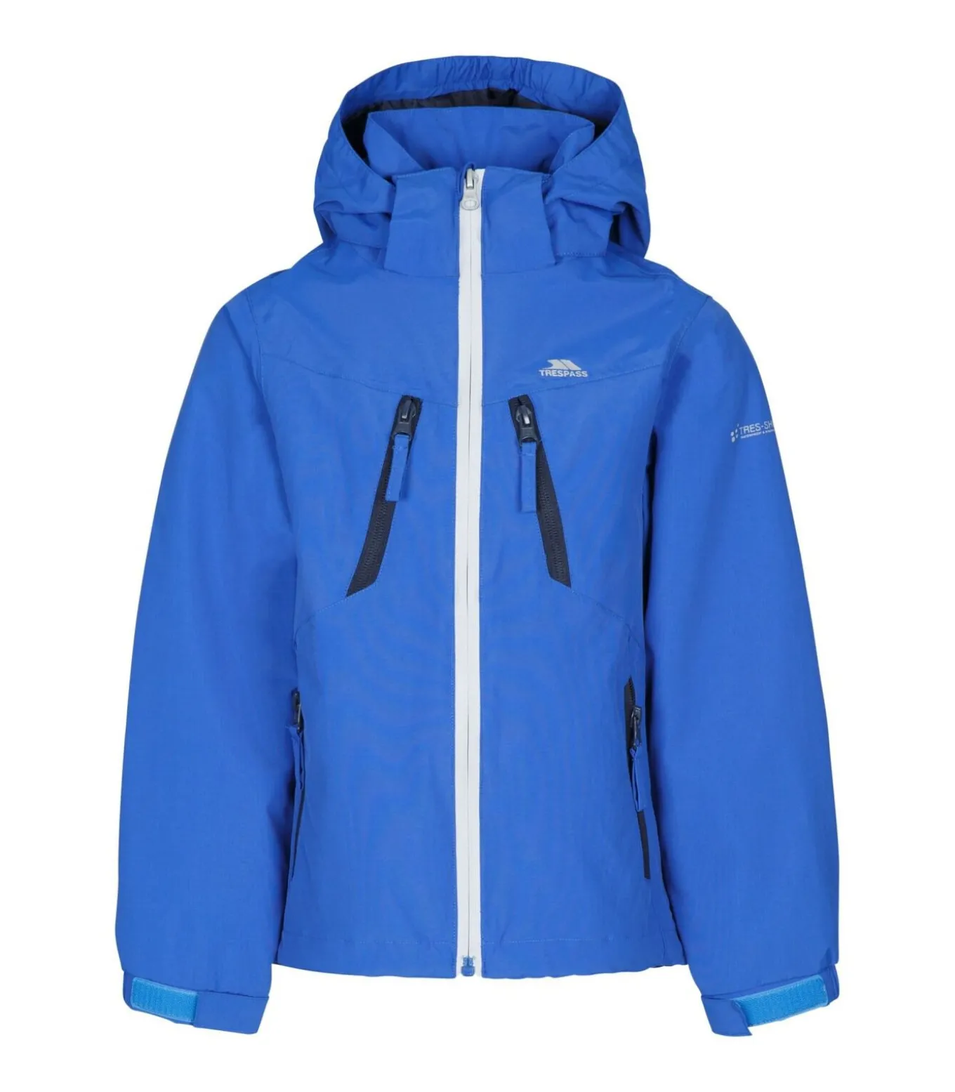 Deze jas is gemaakt door het merk Trespass Boys. Het buitenmateriaal is 100% polyamide met een PU coating. De voering is 100% polyester. Het heeft een geweven stof constructie. Het ontwerp is effen met een logodetail. Het heeft een contrastkleurige rits met een stoffen ritstrekker. De jas is niet gewatteerd en heeft reflecterende details. De naden zijn getapet voor waterdichtheid. De gebruikte stoftechnologie is TP50, waardoor het jack zowel water– als winddicht is. De manchetten hebben een verstelbare sluiting. De hals heeft een afneembare capuchon met elastiek. Er zijn twee steekzakken en twee borstzakken. De hoofdsluiting is een waterbestendige rits over de hele lengte. De waterdichtheid van de jas is 3000mm.