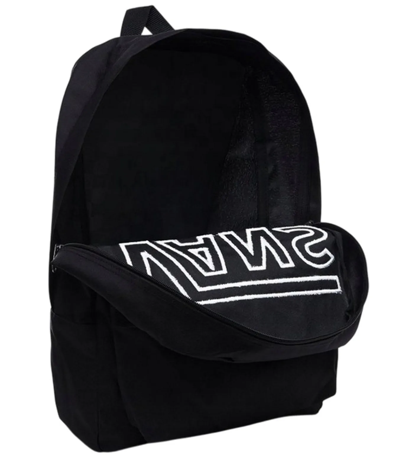 Vans Old Skool Drop V Zwarte Rugzak is gemaakt van ten minste 50% hergebruikt polyester. Dit unieke backpack heeft een hoogte van 41,9 cm, een breedte van 32,4 cm en kan een capaciteit tot 22 liter verzorgen. De diepte bedraagt 12,1 cm. Het bagje telt één voorzak, een rits, twee zijzakken en een fles. Er zijn ook een binnencompartiment en hoofdcompartiment waarin een laptop van maximaal 15 inch past. De handgreep is ergonomisch ontworpen, het schouderriem is gevoerd en verstelbaar. Het ontwerp van dit backpack is eenvoudig met het logo van Vans. Het wordt vastgezet met een ritssluiting.