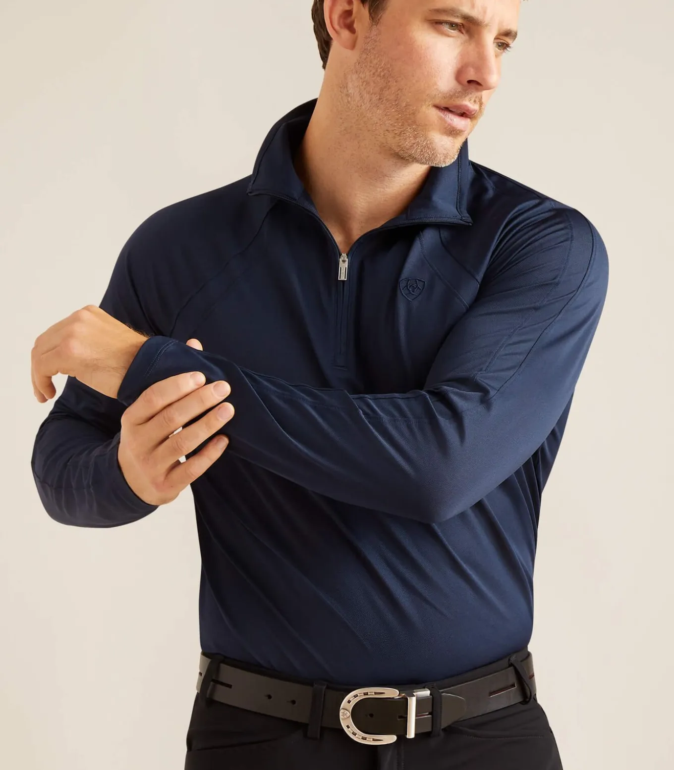 duurzame FreshTEK™–geurtechnologie – Moisture Movement Technology™–systeem om je beter droog te houden – Sun Protection–stof™ voor UV–bescherming – Opstaande kraag met ritssluiting ¼ – Ademende inzetstukken van mesh Materialen – 94% gerecycled polyester,
