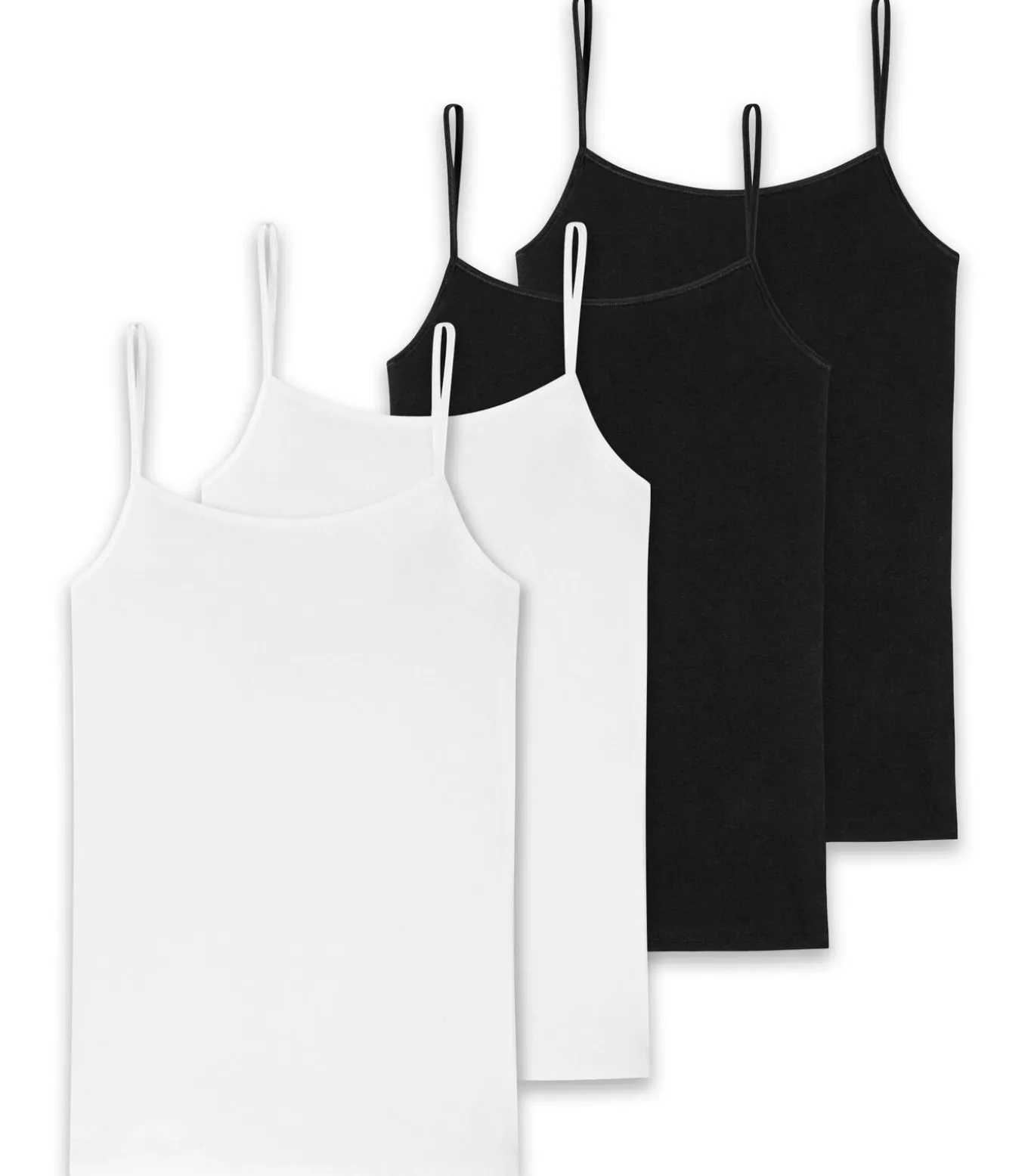 Spaghettitop van het merk SCHIESSER in een betaalbare verpakking van vier. Zachte, rekbare single jersey stof voor een comfortabele pasvorm. Ideaal als ondergoedshirt.