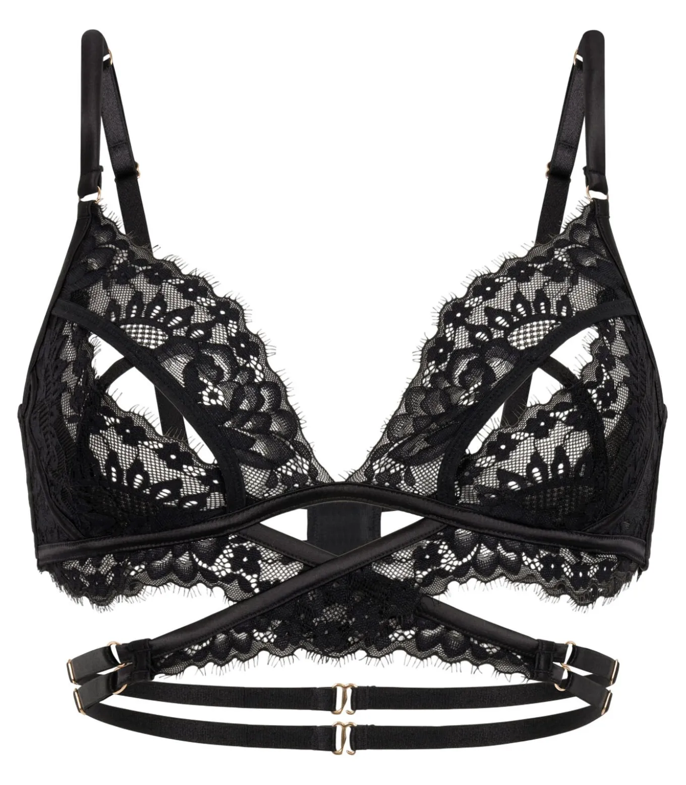 Durf jezelf bloot te geven met deze open kanten bralette, ontworpen voor iedereen die een statement wil maken. Hij is gemaakt van kant dat net zo luxueus aanvoelt als het eruitziet. Het gedurfde open design geeft het romantische silhouet een uitdagend tintje. Het lichte model zonder beugels biedt een comfortabele pasvorm en maakt een opvallende indruk.