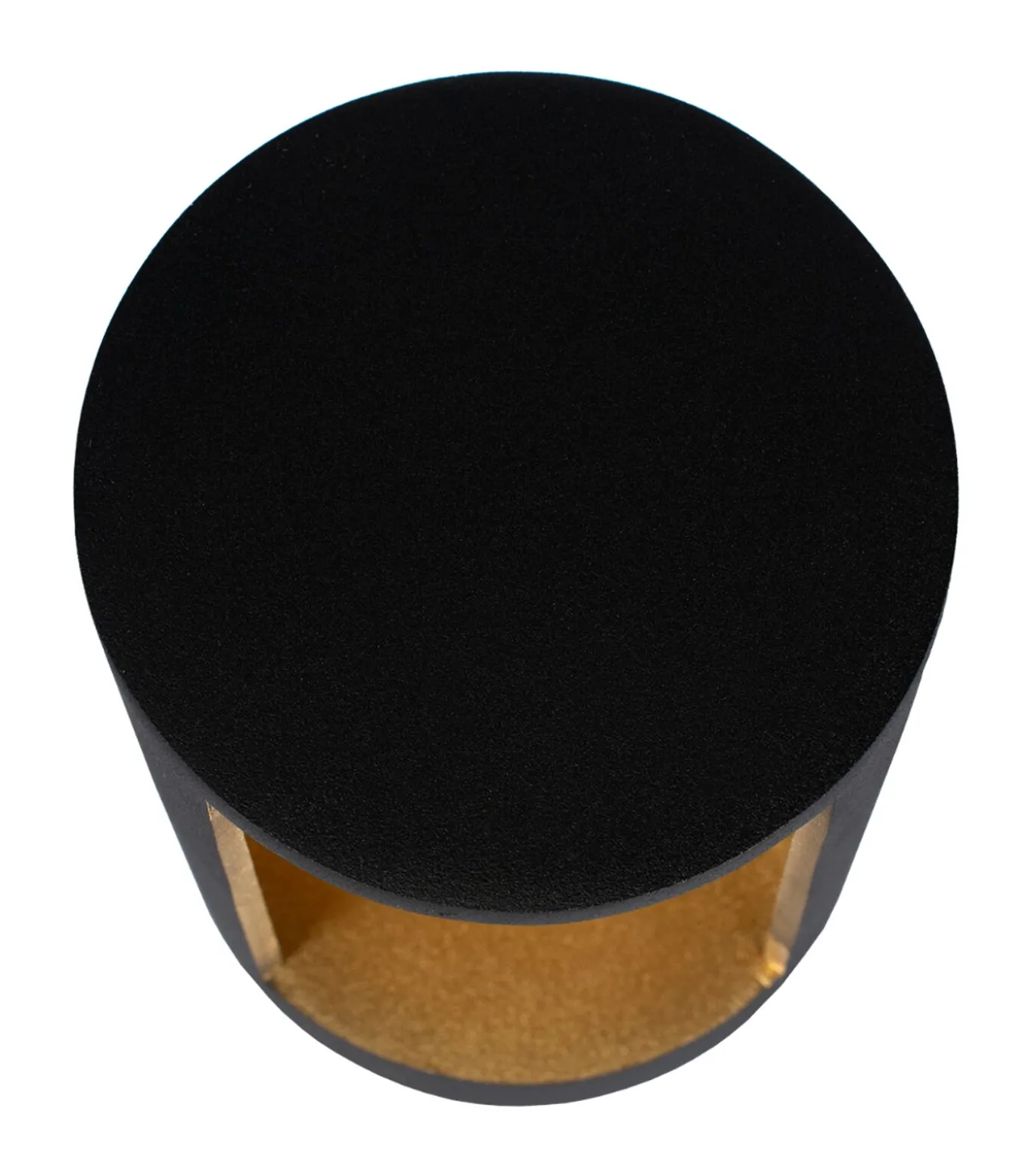 De wandlamp Oswin heeft een stijlvol buisvormig design met een zwarte buitenkant en een goudkleurige binnenkant. Klein maar verfijnd, straalt deze lamp subtiel licht naar beneden uit, wat zorgt voor een warme en sfeervolle uitstraling. Met een breedte van 9,5 cm, hoogte van 9,5 cm, en diepte van 12 cm is Oswin een compacte blikvanger. Wordt geleverd exclusief G9–lichtbron.