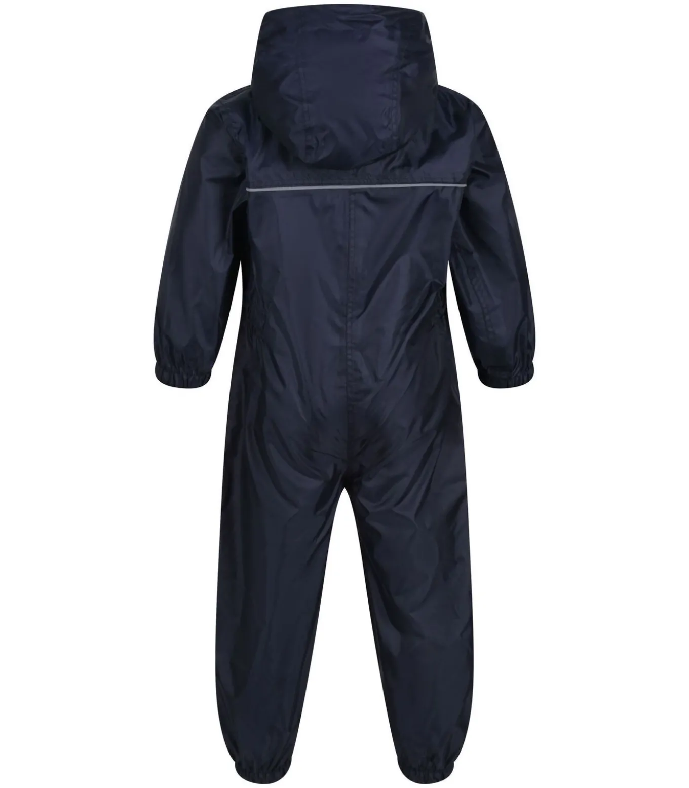 Regatta Professional biedt een all–in–one regenpak voor baby’s/kinderen dat is ontworpen voor bescherming tegen de elementen. Het pak is gemaakt van waterdicht, ademend en winddicht polyester en heeft getapete naden en een capuchon om de drager te beschermen tegen neerslag. De voor– en achterkant zijn voorzien van reflecterende bekleding voor zichtbaarheid bij weinig licht. Het middengedeelte heeft een gedeeltelijk elastische taille voor comfort, terwijl elastische manchetten en zoom water buiten houden. De lichtgewicht maatvoering loopt van 6–72 maanden in stappen die gebaseerd zijn op de lengte van het kind.