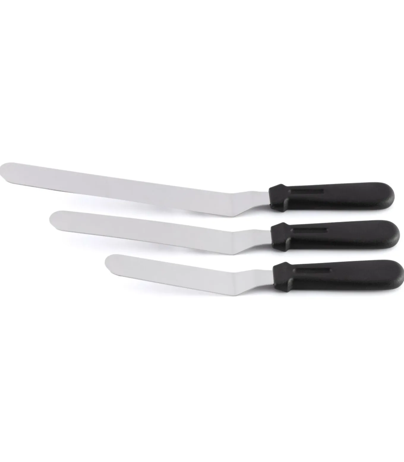 Glaceer nu in een handomdraai de mooiste taarten en andere creaties met de Cookinglife Glaceermessen Paletmessen. De glaceermessen zijn een handige keukentool voor de echte bakliefhebbers. De glaceermessen, paletmessen zijn eenvoudig te gebruiken door het anti–slip handvat en na gebruik kan je ze eenvoudig reinigen in een sopje voor een nog langere levensduur.De Cookinglife Glaceermessenset Paletmessen bevat:Glaceermes Paletmes 12 cm – totale lengte 26 cmGlaceermes Paletmes 16 cm – totale lengte 32 cmGlaceermes Paletmes 22 cm – totale lengte 37 cm