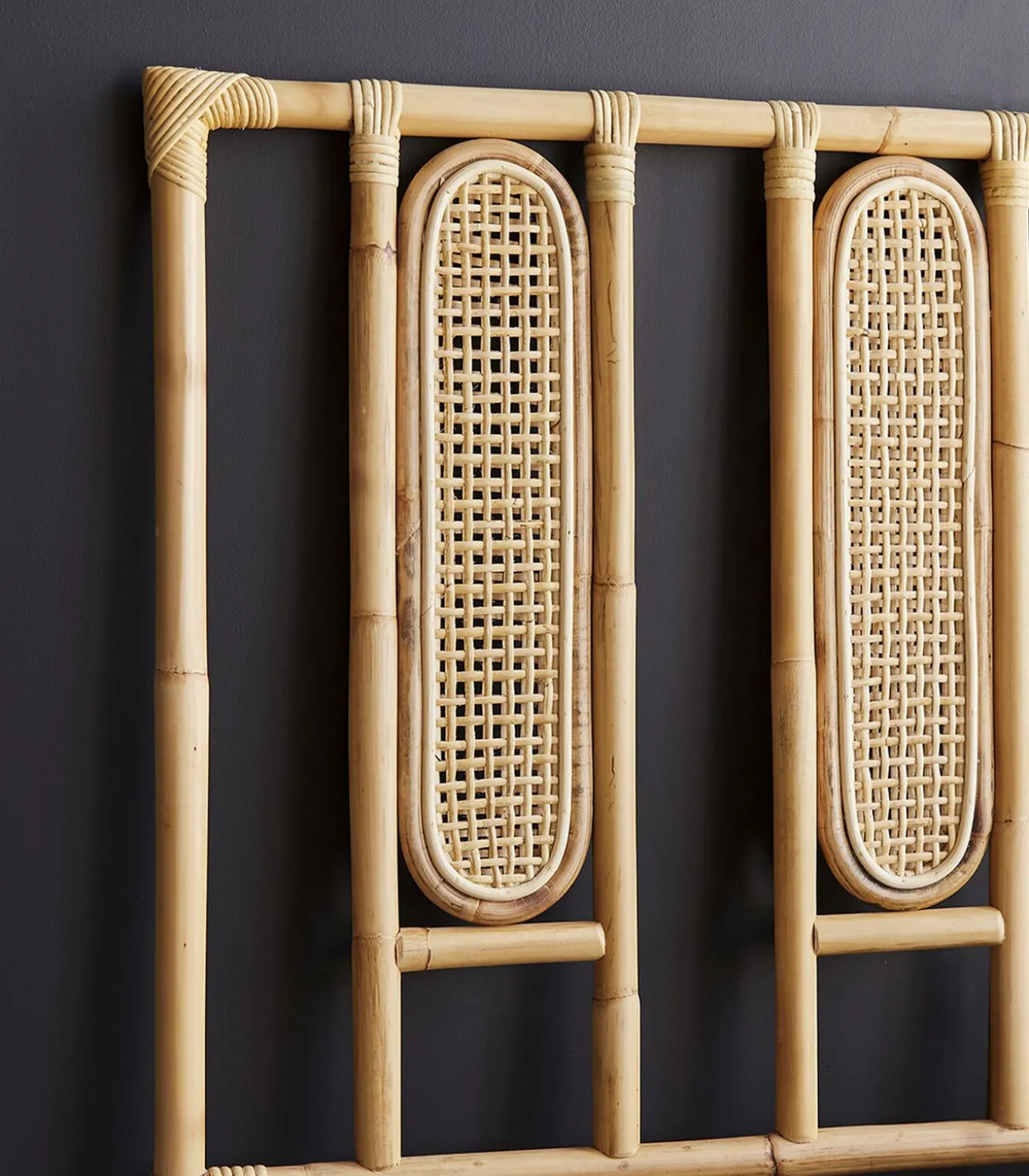 Met een Paulette hoofdbord van gevlochten riet in de slaapkamer nodigt u de jaren zestig uit! Wij houden van de charmante vintage look, de authenticiteit van de natuurlijke vezels en de originaliteit van het ontwerp. Ideaal voor het opfrissen van een klassieke kamer of het creëren van een authentieke sfeer in combinatie met andere meubels uit onze Rotin–collectie.Het hoofdbord Paulette van gevlochten riet past ook perfect bij onze meubelreeks Néo Ethnique.Voor andere slaapkamers met een vintage en natuurlijke touch, raden we onze andere hoofdborden van natuurlijke materialen aan.