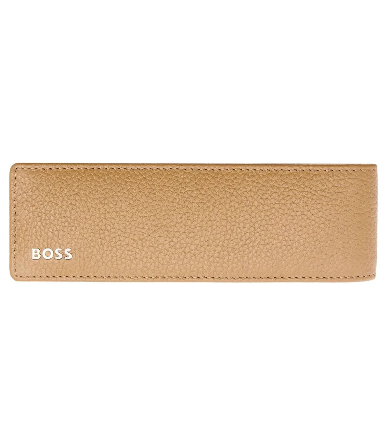 Hugo Boss Double Pen Pouch in Classic Grained Black—a perfect fusion of elegance and functionality for the modern professional. Crafted from premium materials, this exquisite pen case embodies the sophistication and quality synonymous with the Hugo Boss brand. It is signed with our crisp BOSS metal plate in chrome finish. It features a tone on tone monogrammed lining. Dimensions: 165 x 35 x 20 mm, Material: Cowhide leather