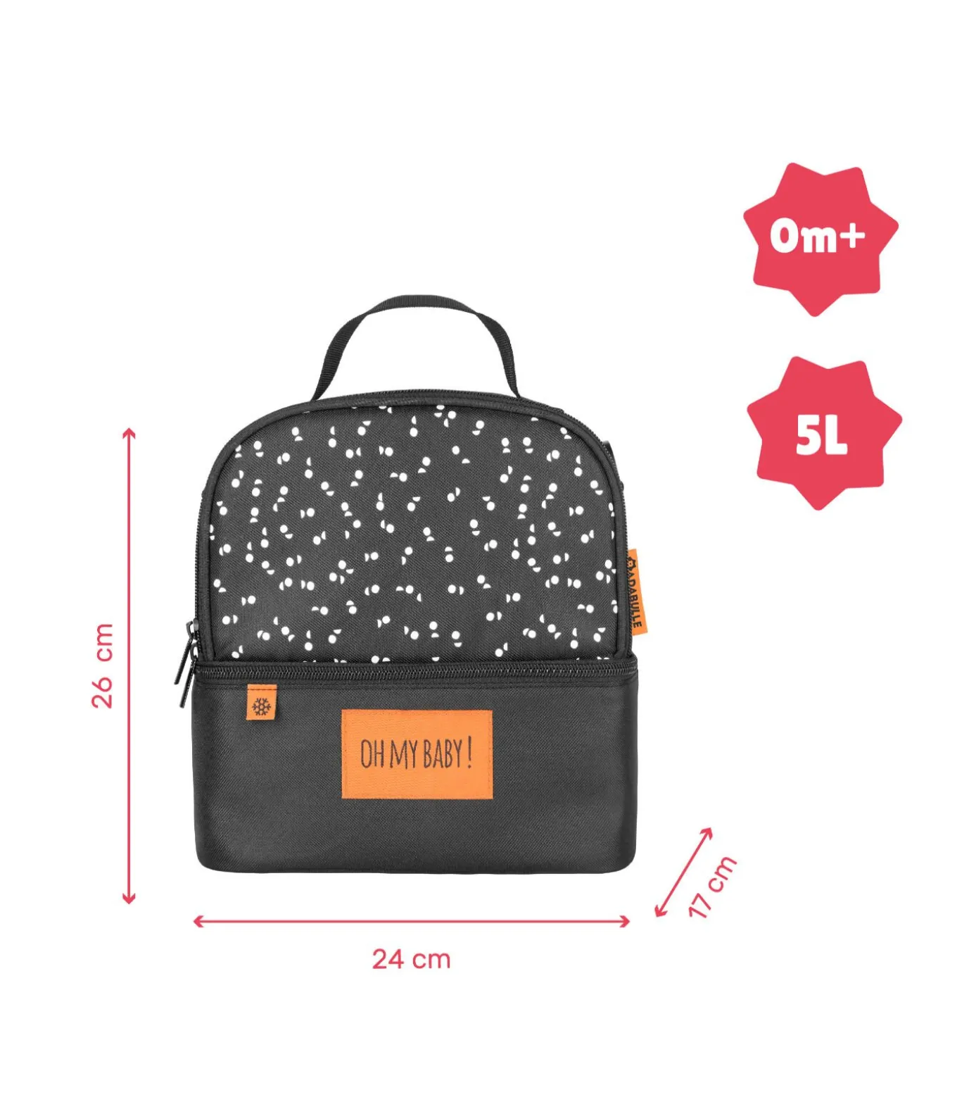 2 in 1: babymaaltijden warm en koud houden Lange opslag: 3 uur warm en 5 uur koud Grote capaciteit van 5L 2 grote volledig geïsoleerde zakken voor optimale opslag 1 vak met ritssluiting en 1 opbergnet om accessoires op te bergen