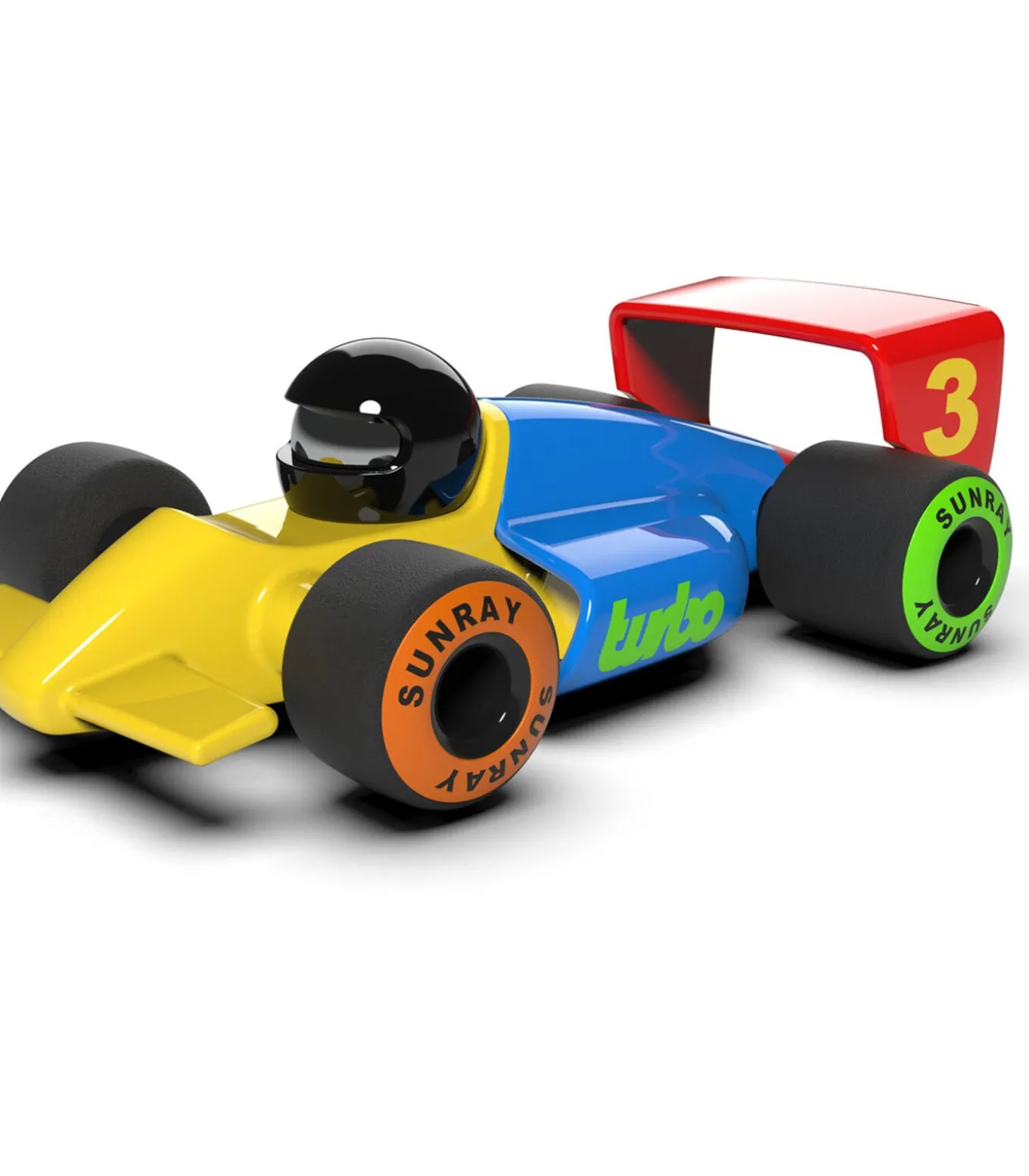 Playforever auto Turbo Miami speelgoedauto – kleurrijk designDe Turbo Miami speelgoedauto van Playforever brengt het iconische racegevoel uit de jaren 80 tot leven. Met zijn opvallende kleuren, stoere vleugels en unieke vormgeving is deze auto een echte blikvanger in elke speelgoedcollectie.Deze speelgoedauto is gemaakt van stevig ABS–kunststof met een hoogglans UV–coating, waardoor hij niet alleen duurzaam is, maar ook prachtig glanst. Dankzij het handgepolijste oppervlak voelt hij luxe aan en kan hij tegen een stootje. Geschikt voor kinderen vanaf 3 jaar, maar ook volwassenen zullen de charme van deze retro raceauto waarderen.Laat je fantasie de vrije loop en race met de Turbo Miami door bochten en over rechte stukken. Of je nu speelt of verzamelt, deze auto zorgt altijd voor plezier en een vleugje nostalgie.Extra informatieIconisch design geïnspireerd op Formule 1 uit de jaren 80Gemaakt van hoogwaardig ABS–kunststof met UV–coatingGeschikt voor kinderen vanaf 3 jaarHandgepolijst en duurzaam speelgoed