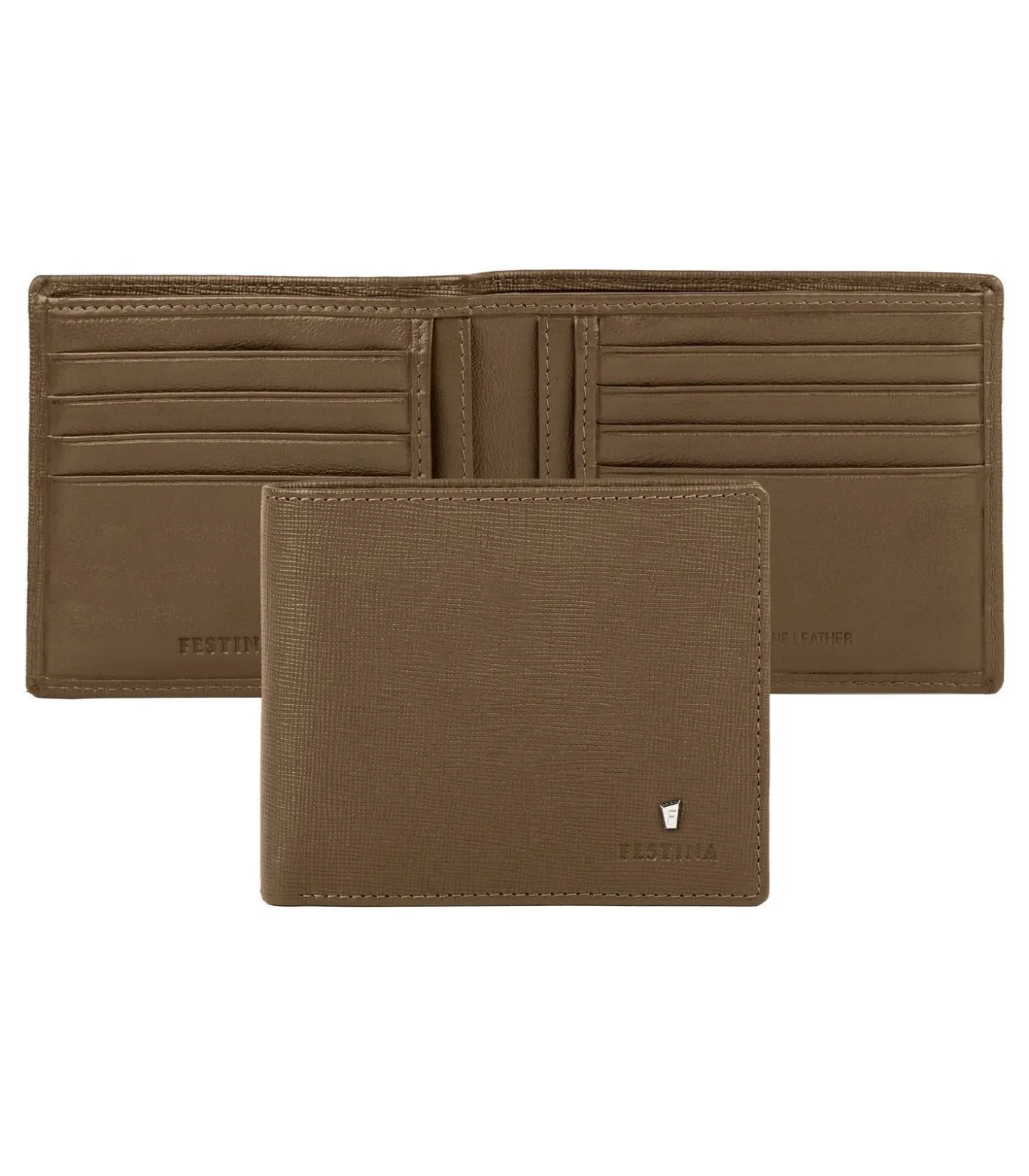 De “Chronobike” kleine lederwarenlijn is gemaakt van zorgvuldig gekozen echt leder, met een safianostructuur. Deze nieuwe camel versie is versierd met een chromen handtekening, voor een tijdloze look. De iconische handtekening, het trapeziumvormige F–logo, is teruggebracht tot de kleinst mogelijke schaal, om de lijn een luxueus afgewerkte toets te geven, terwijl hij toch optimaal kan worden gebruikt. Het wordt onderstreept door een prachtig Festina–logo in reliëf. Deze kaartportefeuille is minimaal, compact en zeer praktisch, met in totaal 12 kaartsleuven en een in tweeën gedeeld compartiment voor bankbiljetten. Dimensions: 95 x 110 mm, Material: Leather