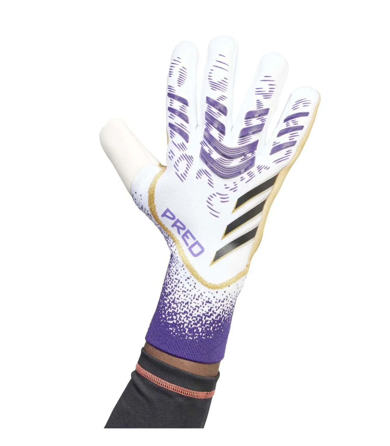 Kleur: Wit / Zwart / Aurora Plum Samenstelling: 91% gerecycled polyester, 8% elastaan, 1% nylon Details: URG 2.0 latex handpalm voor optimale grip, negatieve snit voor een nauwsluitende pasvorm, gebreide handrug met siliconen inzetstukken voor nauwkeurige blokkering, verlengde latex duimgreep, strapless instap voor een natuurlijke en stabiele pasvorm Gebruik: Predator Pro keepershandschoenen, ideaal voor zelfverzekerde en responsieve prestaties in de wedstrijd