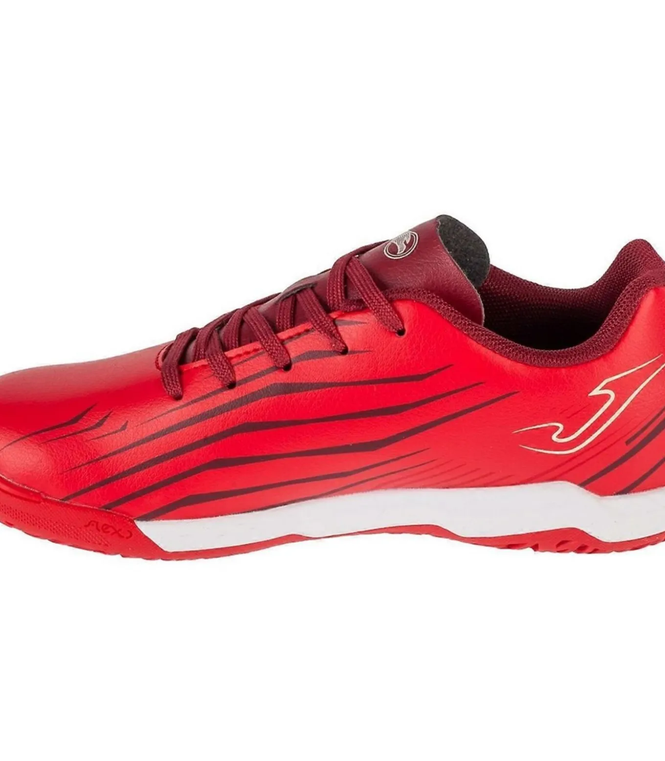 Joma–voorstelling Propulsion – Rode bal: Een synthetisch leder bovenstuk met een synthetisch binnenzool en buitenzool van gegrepen rubber, met vijf vlakke, laag gesneden ogen. Het ontwerp kenmerkt zich door contrastende details en het logo, met een rond toetslus–ontwerp.