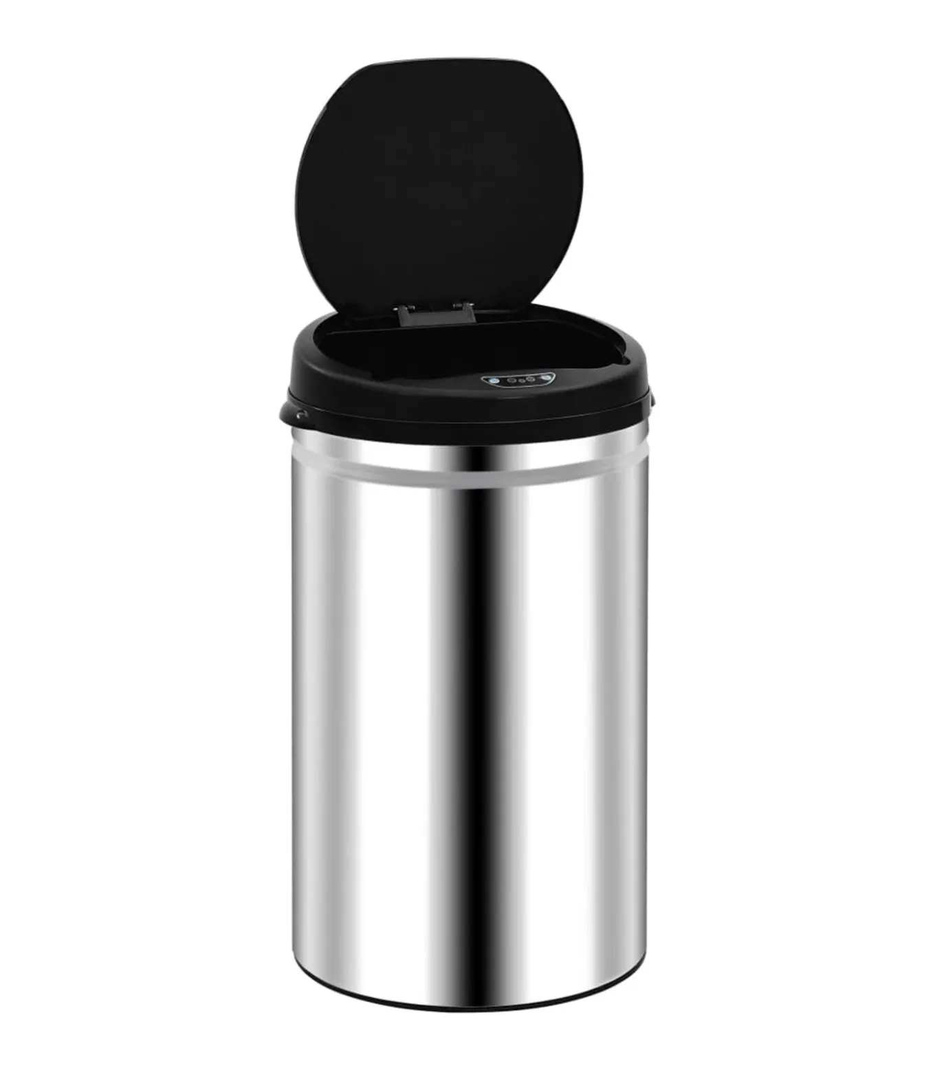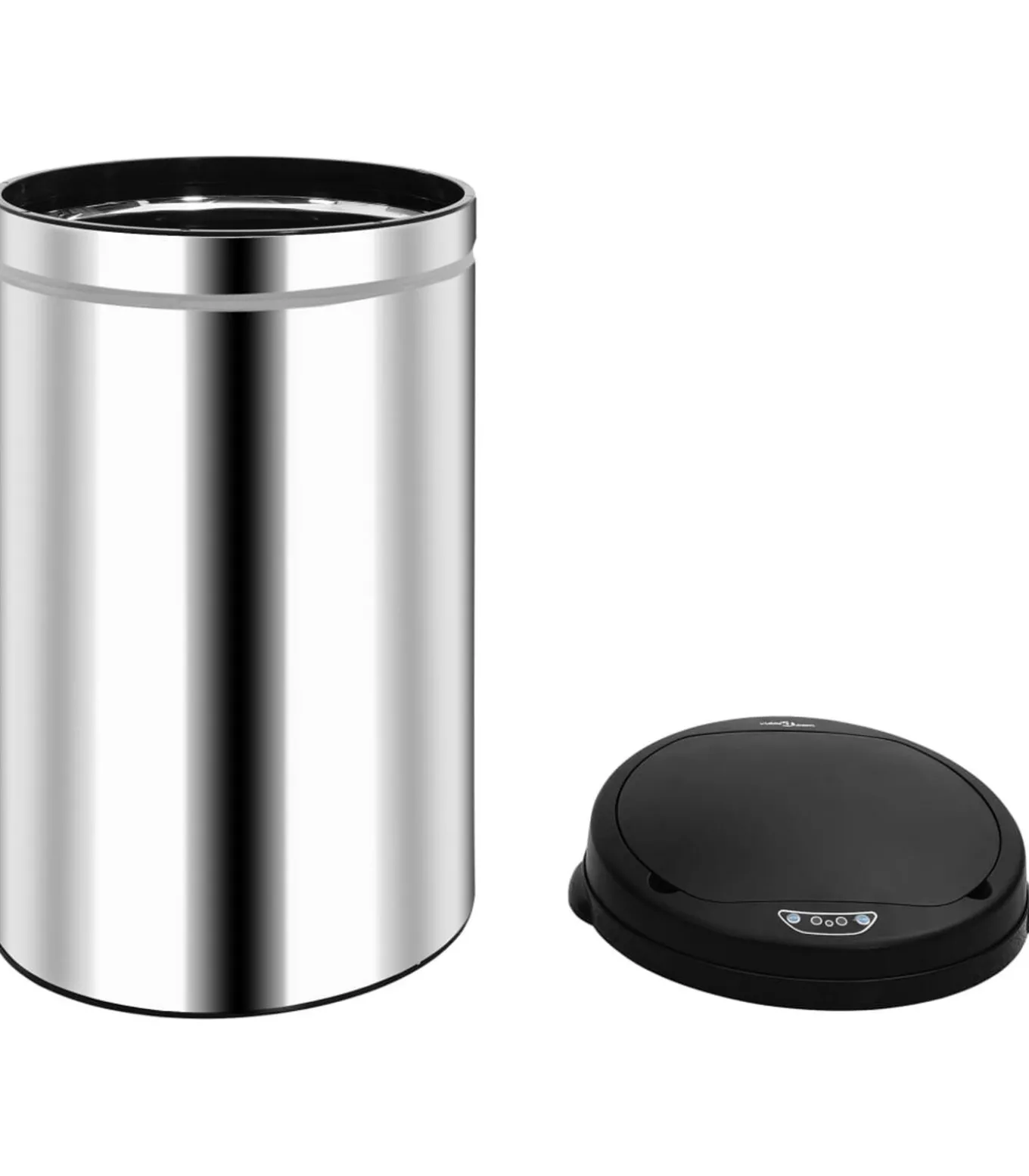 Deze prullenbak heeft een roestvrijstalen behuizing en een sterk ABS deksel, waardoor hij duurzaam en gemakkelijk schoon te maken is. Hij heeft een ring om de zak te bevestigen en het deksel kan eenvoudig worden afgenomen. Je kan de sensor uitschakelen om het deksel handmatig te openen en sluiten.