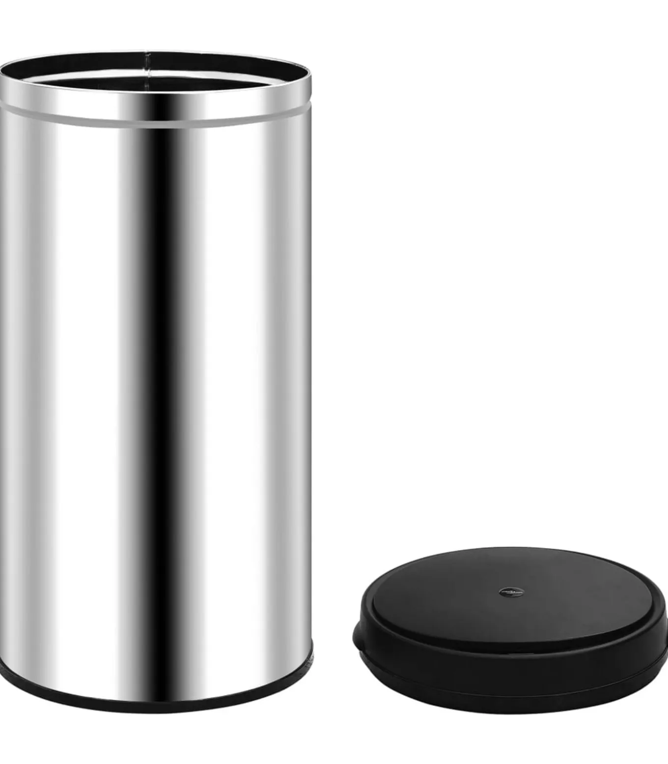 Deze prullenbak heeft een roestvrijstalen behuizing en een sterk ABS deksel, waardoor hij duurzaam en gemakkelijk schoon te maken is. Hij heeft een ring om de zak te bevestigen en het deksel kan eenvoudig worden afgenomen. Je kan de sensor uitschakelen om het deksel handmatig te openen en sluiten.