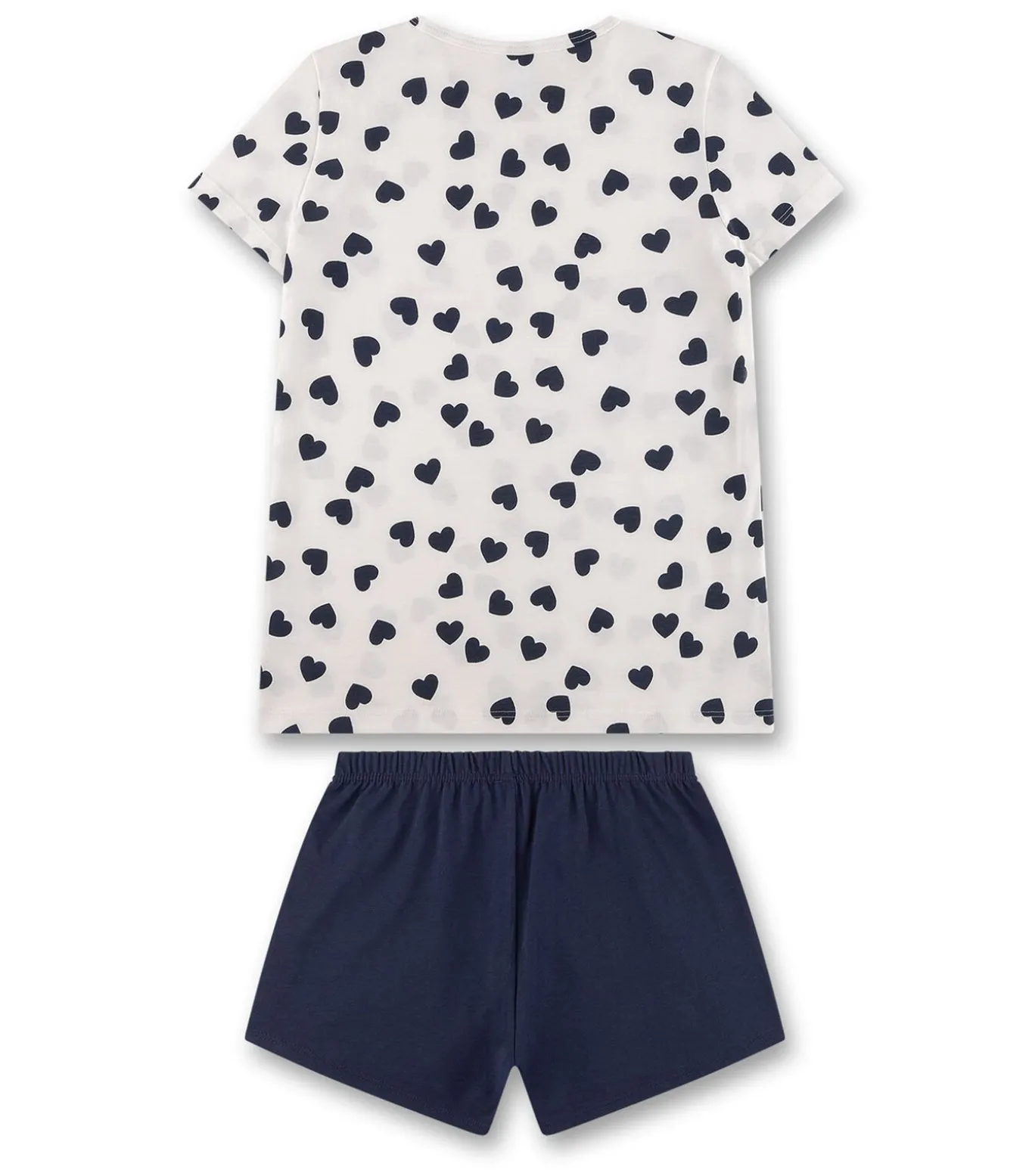 Korte pyjamaset voor meisjes van het merk Sanetta. Top met korte mouwen en all–overprint en korte effen pyjamabroek. Zachte single jersey kwaliteit.