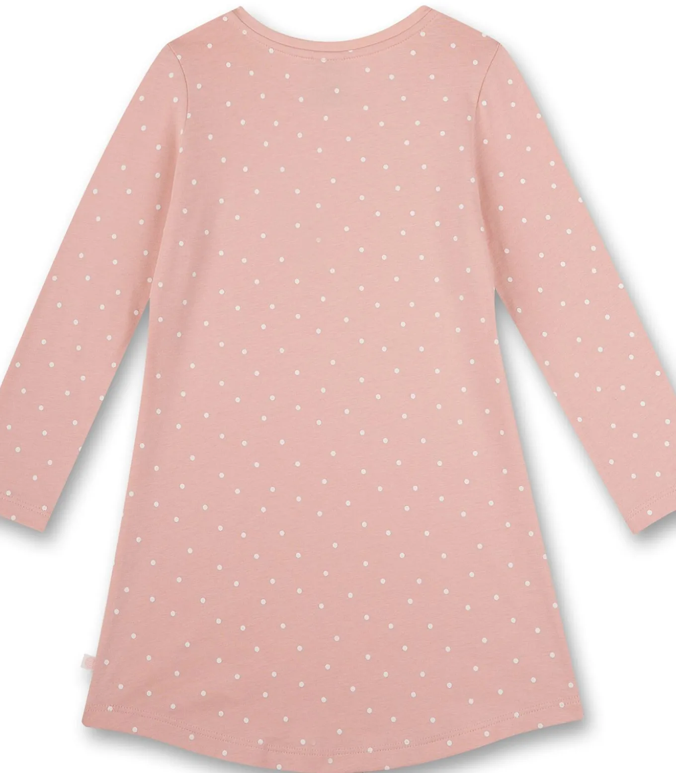 Sanetta nachthemd met lange mouwen voor meisjes. Gestippeld slaaphemd. Aangenaam, zacht katoenen materiaal. Biologisch katoen.