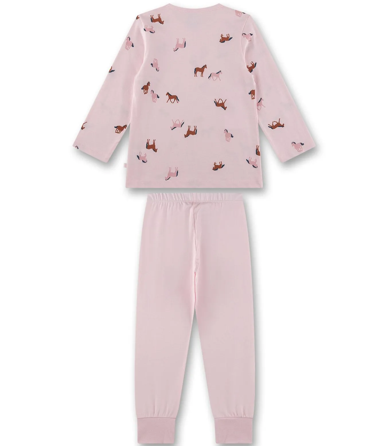 Pyjama voor meisjes van het merk Sanetta. Shirt met lange mouwen en motief en ronde hals. Lange effen pyjamabroek met manchetten.