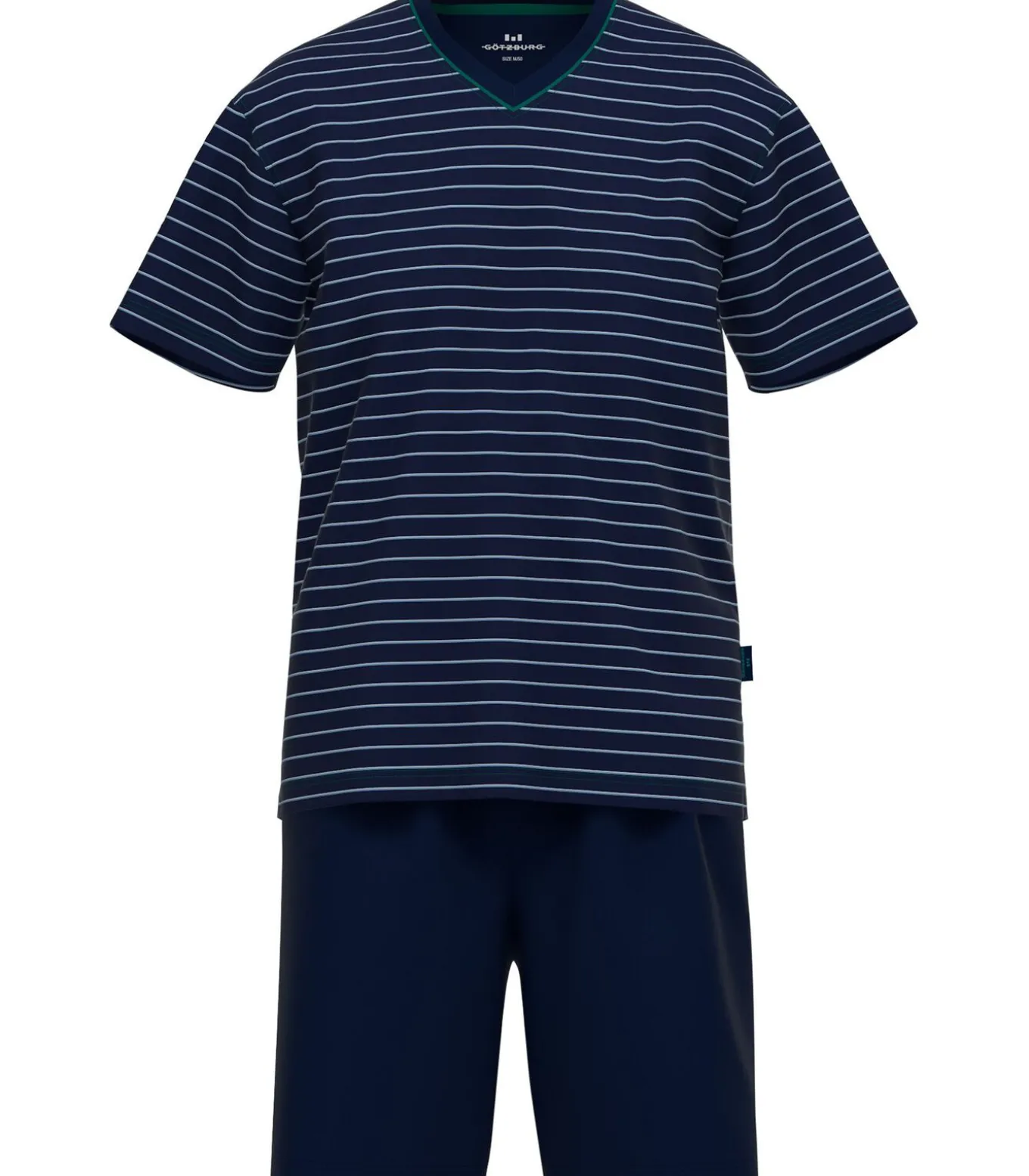 Pyjamaset voor heren van het merk GÖTZBURG. Korte, effen pyjamabroek. Shirt met korte mouwen en all–over dessin. Klimaatactief.