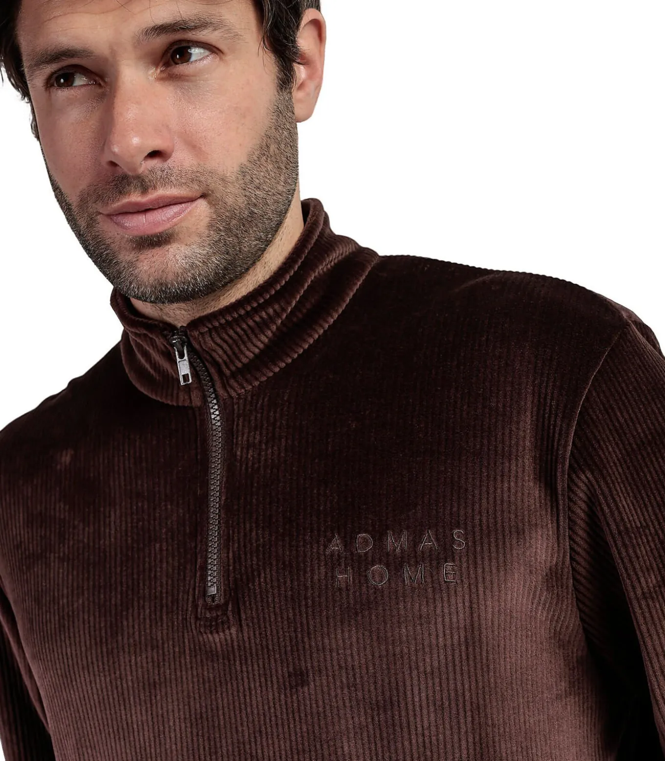 Een pyjama die zachtheid, comfort en een vleugje casual stijl combineert, perfect voor cocooning momenten thuis. Gemaakt van speciaal dubbelzijdig fluweel, geribd aan de voorkant, het is ultrazacht en voelt zeer aangenaam aan, perfect om warm te blijven. De ruimvallende top met lange mouwen heeft een gedeeltelijke ritssluiting bij de kraag, zodat je de opening naar wens kunt aanpassen. Op de buste is een klein, discreet logo geborduurd. Hoge kraag voor extra warmte rond de hals, praktische kangoeroezakken op de voorkant. De lange broek heeft een rechte, comfortabele snit. De onderbenen zijn nauwsluitend, voor een goede pasvorm en om te voorkomen dat de broek ’s nachts omhoog komt. Het is een knusse, warme outfit, ideaal voor de herfst en winter, voor ontspannen avonden of vrije dagen waarop je je comfortabel wilt voelen zonder de stijl te verwaarlozen. Licht satijnen afwerking die het licht goed vangt. Geleverd in een Admas–doos.