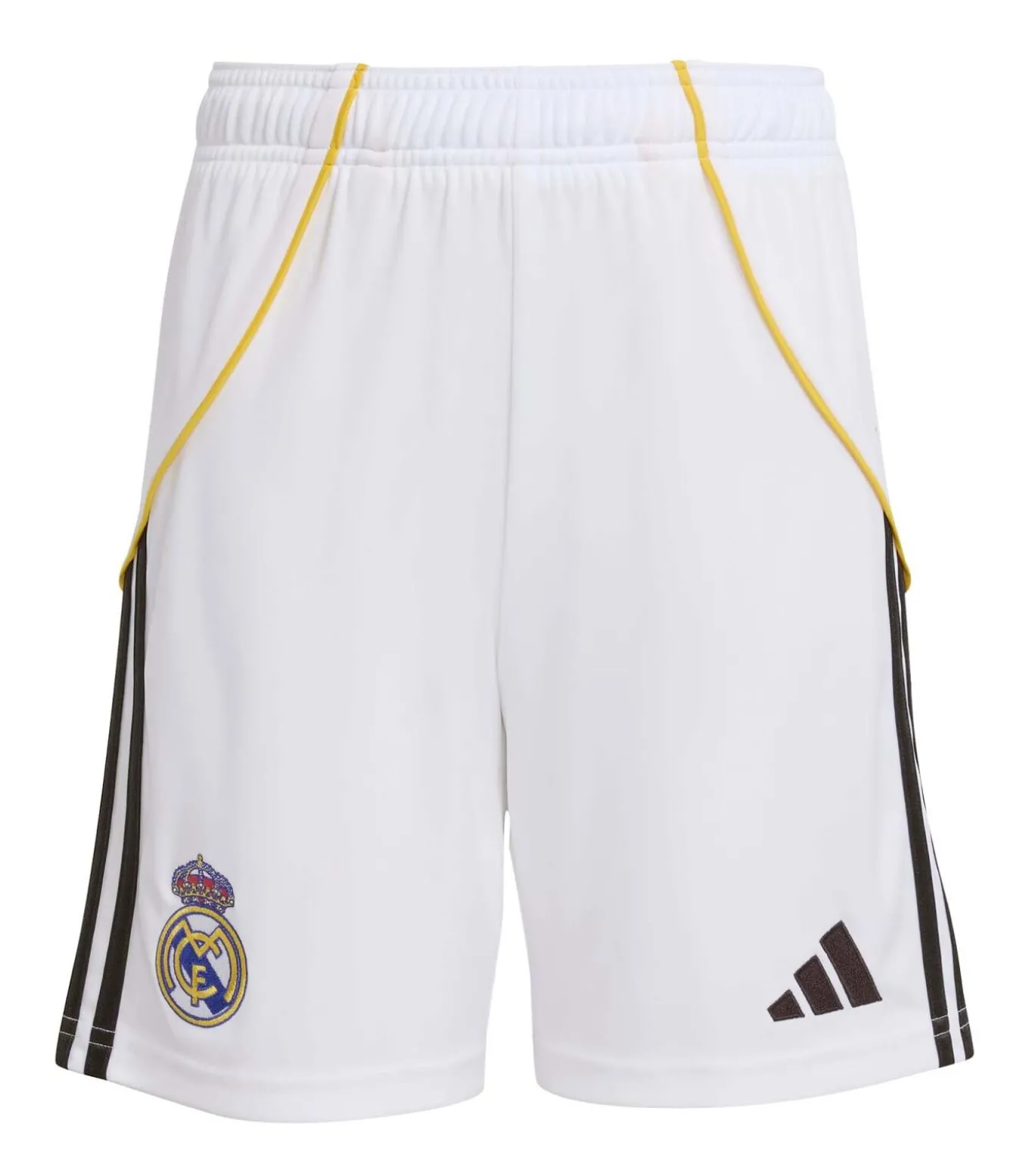 Kleur: Wit Samenstelling: 100% gerecycled polyester Pasvorm: Normaal Sluiting: Trekkoord in de taille Details: Officiële Real Madrid 25/26 thuisshort voor kinderen, geïnspireerd op het nieuwe tijdperk van het Bernabéu–stadion. Het geborduurde embleem boven de zoom viert de trots van Madrid, terwijl de AEROREADY–technologie de huid droog houdt op het veld en op de tribunes. Gebruik: Ideaal voor jonge fans tijdens trainingen, wedstrijden of momenten van hartstochtelijk gejuich.