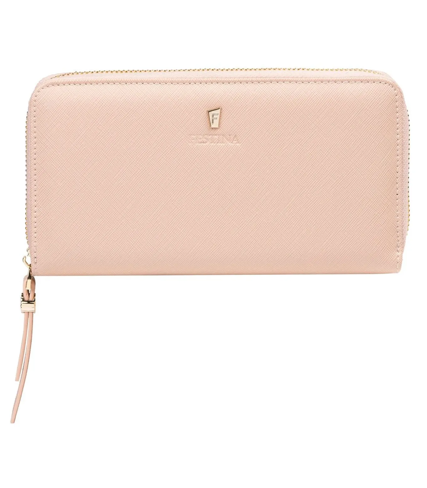 De “Mademoiselle” reisportefeuille is gemaakt van kwalitatief hoogwaardig vegan saffiano leer (PU) met structuur. Elk detail is zorgvuldig afgewerkt, zoals de ritssluiting die is versierd met het Festina blazoen en geïnspireerd op de iconische horlogestopknop van het merk. De damesportemonnee heeft een zeer praktische binnenzijde in contrasterende kleur. Zo heeft deze lichtroze versie heeft een contrasterende bordeauxrode binnenkant. De buitenzijde toont subtiel het Festina logo, in de vorm van een gouden metalen “F” plaatje. Deze luxueuze accessoire wordt geleverd in een bijpassende design geschenkbox. Dimensions: 195 x 25 x 105 mm, Material: Polyurethane