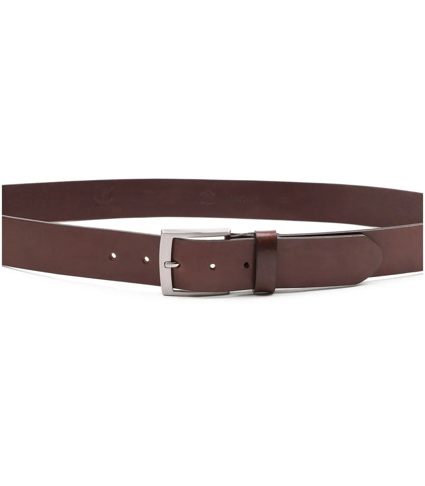 Je outfit is pas echt compleet met deze donkerbruin lederen riem van Suitable. Kies voor deze stijlvolle riem en geniet van de mooie afwerking en de moderne uitstraling. Deze herenriem heeft een zwarte kleur en is voorzien van een zilverkleurige gesp. Draag de riem bij uw favoriete jeans, een chino of een pantalon. Dankzij het ontwerp is deze riem gemakkelijk te combineren bij verschillende outfits.De riem van Suitable heeft een breedte van 4 cm en is volledig gemaakt van leer. Suitable riemDonkerbruin gekleurdGemaakt van leer4 centimeter breed