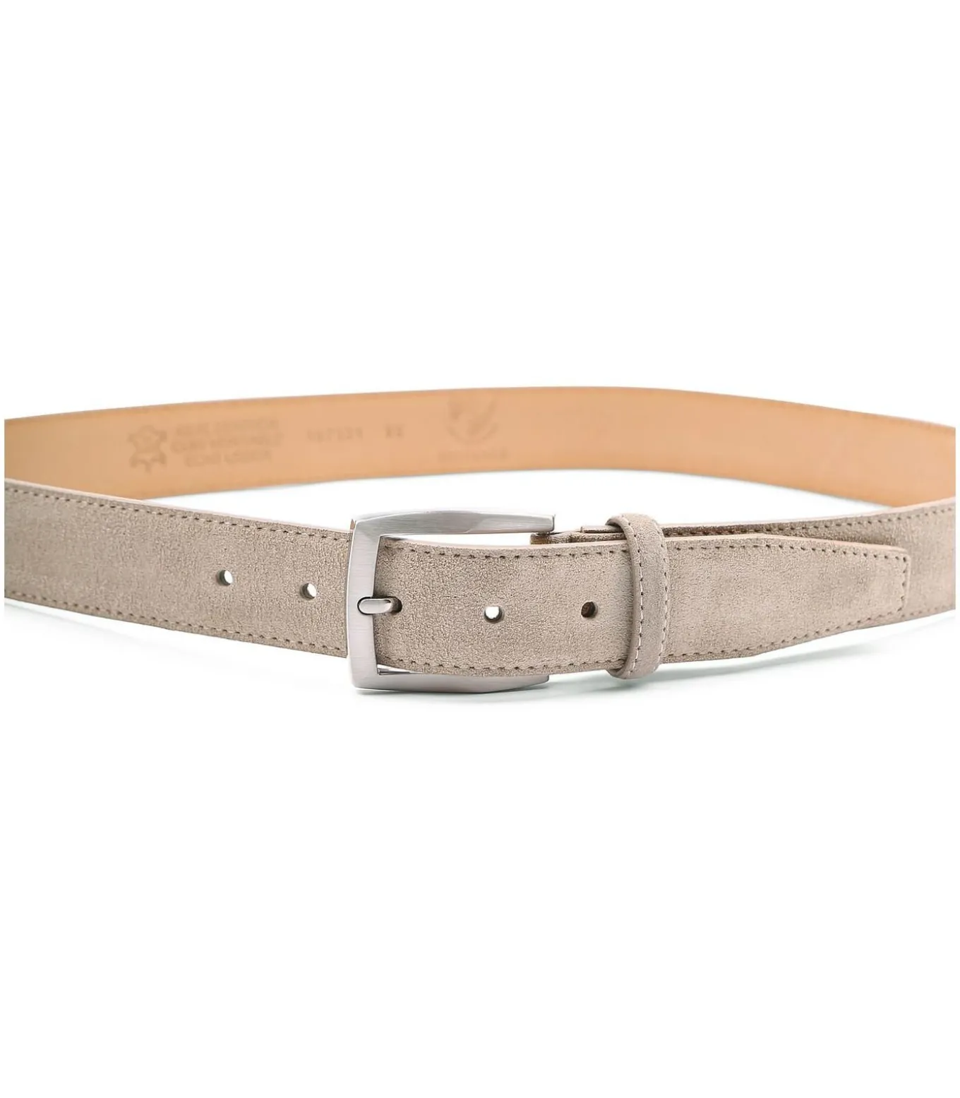 Met deze Suitable riem haal jij een kwalitieve en moderne riem in huis. De suede riem heeft een goed te combineren witte beige kleur en is gemaakt van volnerf leer met een breedte van 3,5 centimeter. Deze riem is zowel zakelijk als casual te dragen! De riem staat uitstekend in combinatie met een spijkerbroek maar ook op een kostuum is het een mooi accessoire.Suitable riem suedeWitte beige kleurMet modern dessinGemaakt van suède Breedte: 3.5 cm