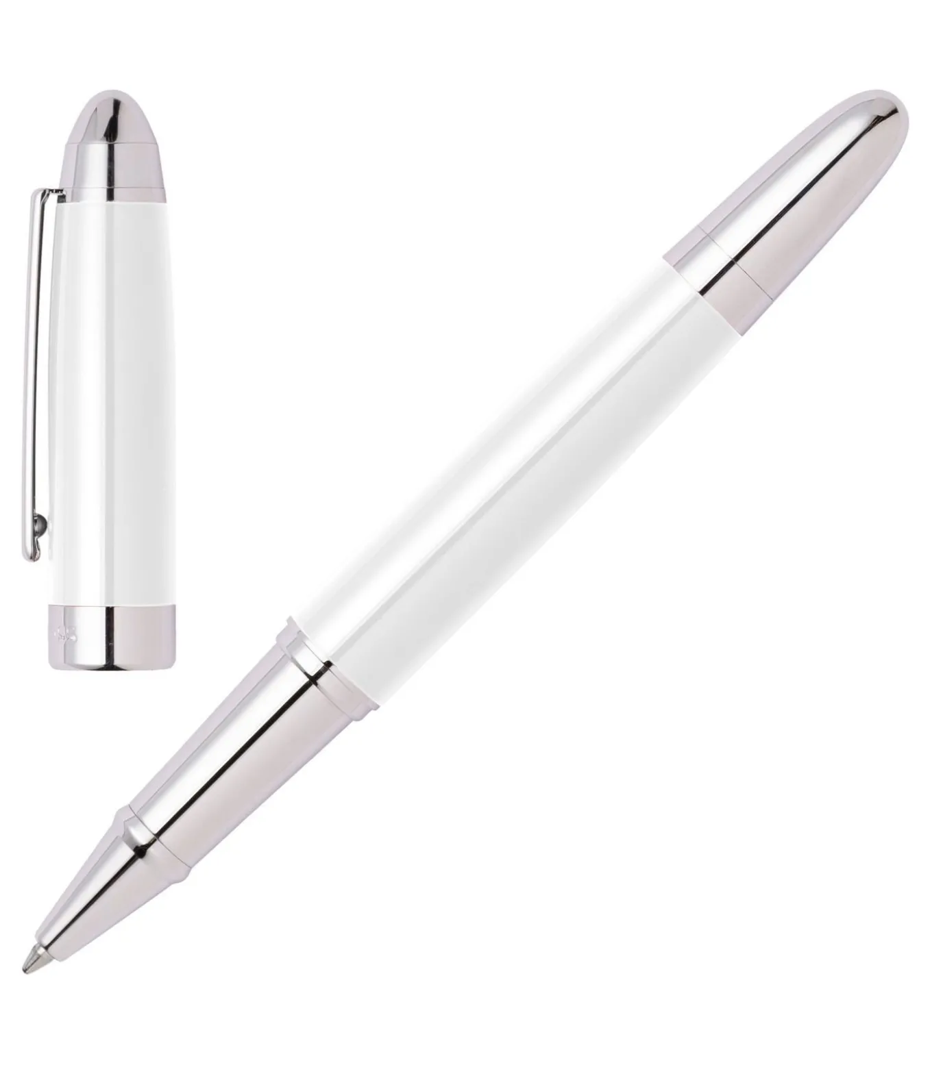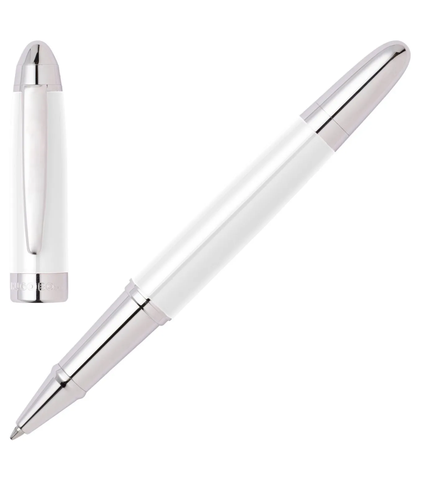 Elevate your writing experience with the HUGO BOSS Rollerball Pen Icon White. This elegantly designed pen features a striking white and black color palette, crafted from premium brass with a sleek lacquer finish. Weighing just 46g, its comfortable grip allows for effortless writing, while the blue ink cartridge ensures smooth, consistent lines. Perfect for both men and women, this refined pen is an ideal accessory for anyone who values sophistication and style in their everyday tools. Make a statement with every stroke—choose the HUGO BOSS Rollerball Pen Icon White today! Dimensions: DIA.12/H.138 mm, Material: Brass,Lacquer,Black chrome