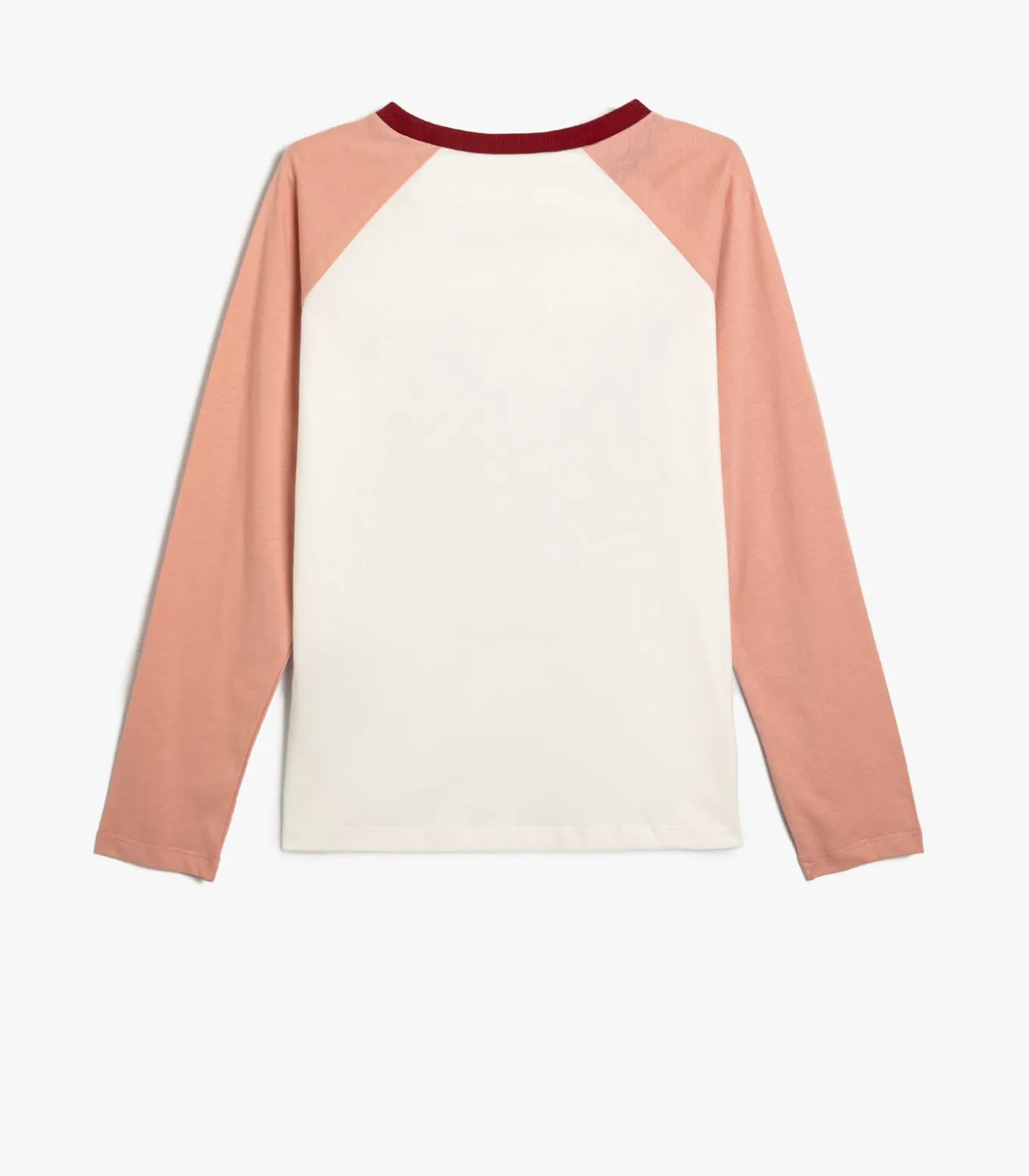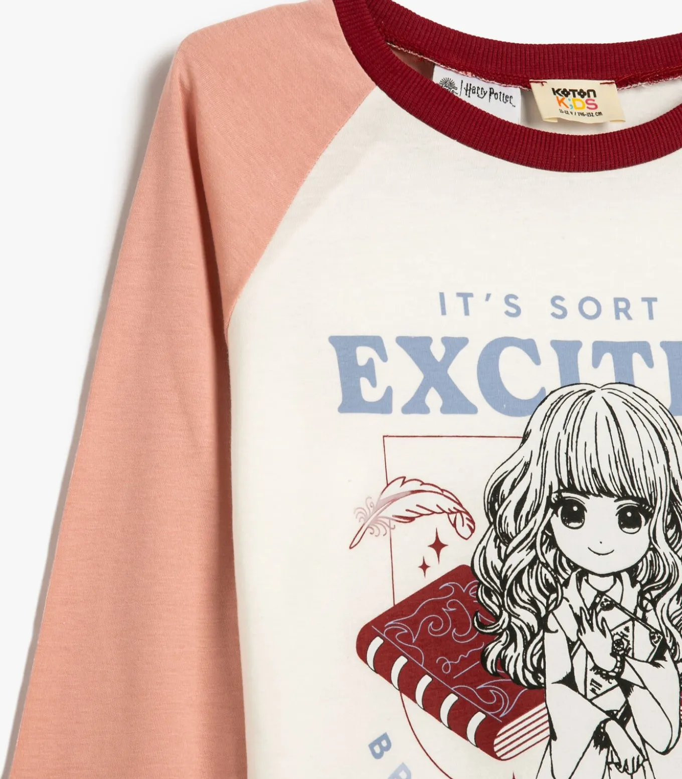 Met drukwerk Pigment afdruk Licentie Slim zonder zak Crop lengte Lange mouw Ronde kraag Warner Br–Licentie Tshirt