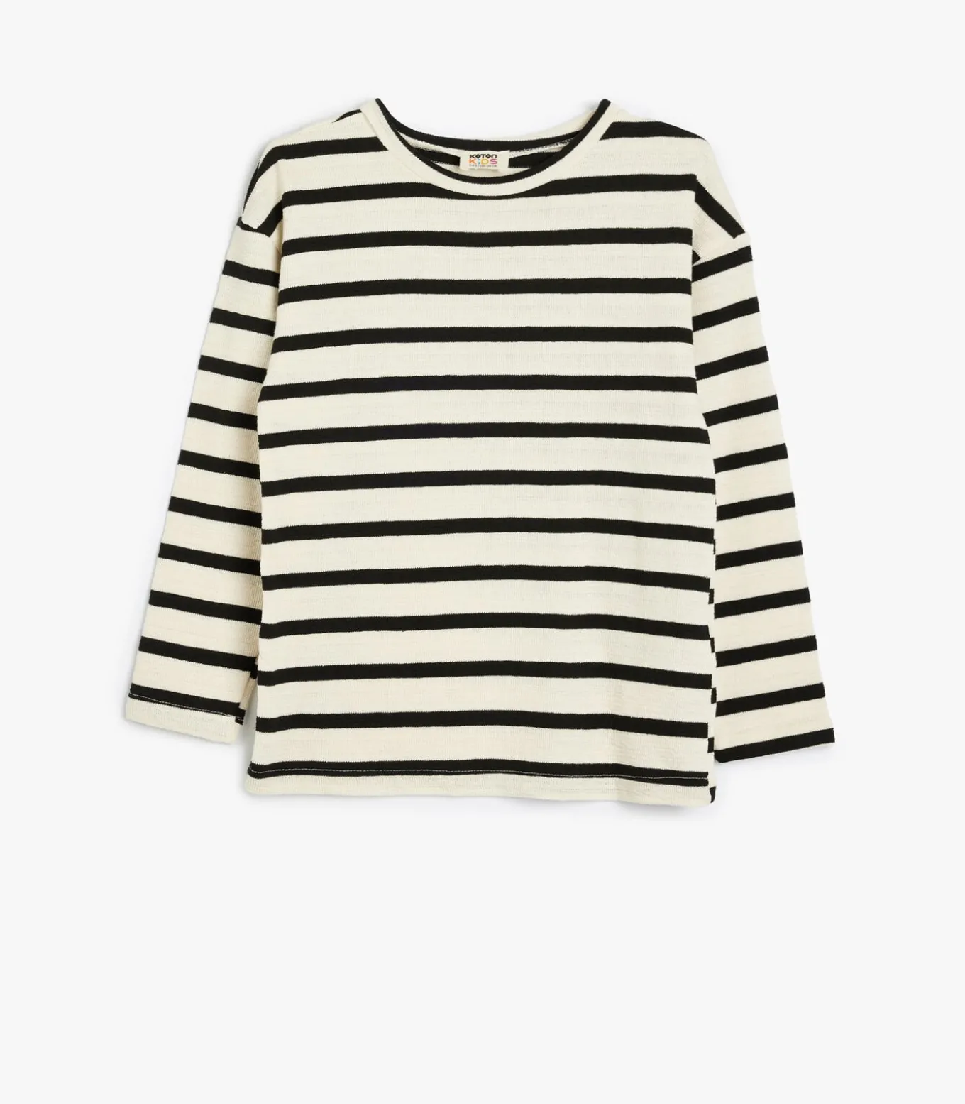 Stof gedetailleerd Gestreept Normaal Basis zonder zak lang Lange mouw Ronde kraag Tshirt