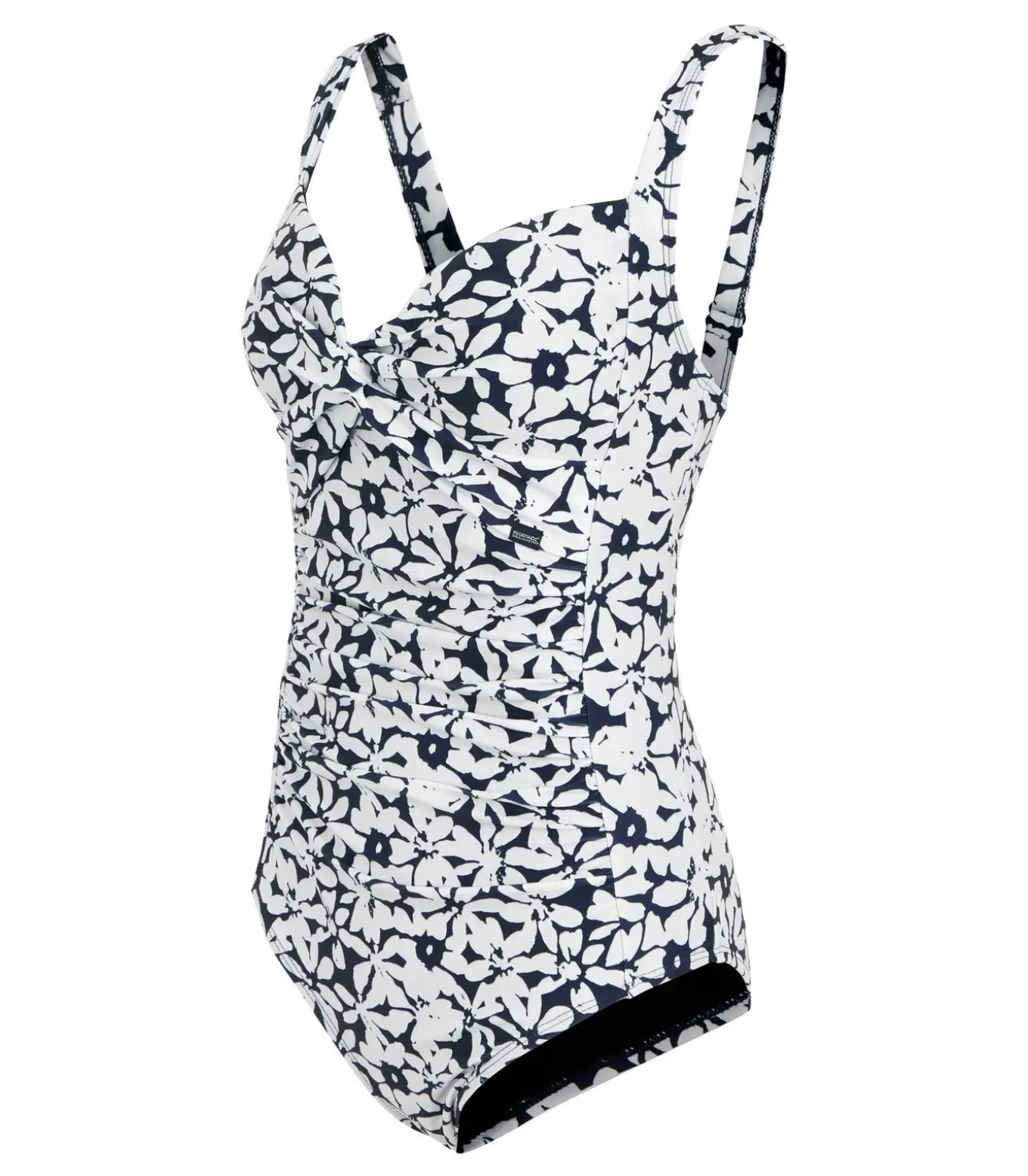 Regatta’s Sakari eenstukbadpak Marineblauw biedt u comfort en stijl in één. Het badpak bestaat uit 85% polyester en 15% elastaan, waardoor het zacht aanraakbaar is met een stretchfunctie. Het ontwerp van dit badpak is bedekt met bloemen en het hebt u handmatig te trekken om in te leggen. De achterkant is vierkant en de hals is van liefje. Het badpak heeft een verborgen, verstelbaar bandje zonder bredere streepelementen, gecupteerde, ondersteunende cups met buikcontrole. Het pasvorm van dit badpak is flatterend. Het badpak is gemaakt van hergebruikt materiaal en beschikt over een UPF 50+ zonnesteuningsfactor.