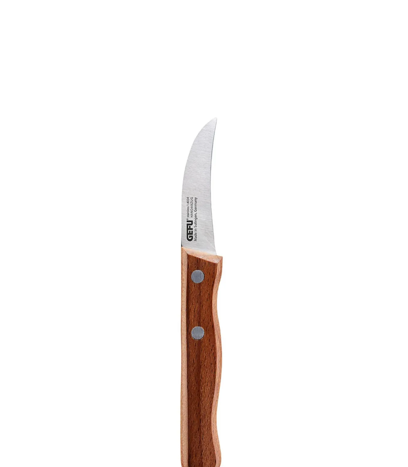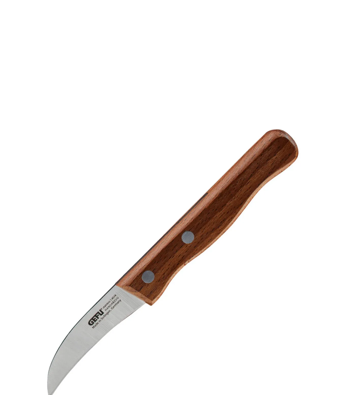 • gebogen mes: ideaal voor het schillen van groenten, aardappelen of fruit• ergonomisch gevormde handgreep van fraai Zuid–Europees walnoothout• stevig en corrosiebestendig mes: 6 cm• reiniging: gewoon afspoelen en direct afdrogen•
