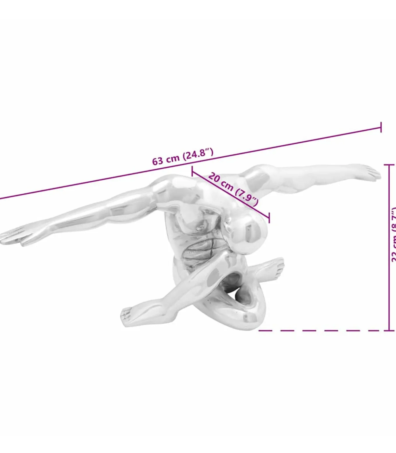 Hoogglanzende Afwerking: Bewonder de glanzende uitstraling van dit beeld, dankzij het zorgvuldige polijsten. De afwerking benadrukt de reflecterende zilveren kleur, wat helderheid en stijl aan jouw ruimte toevoegt.