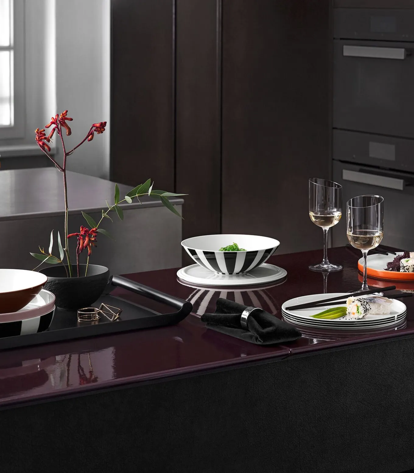 De Iconic collectie belichaamt de waarden van design, moderniteit en kwaliteit die diep geworteld zijn in het DNA van Villeroy & Boch. De onderdelen, die op verschillende manieren kunnen worden gecombineerd, maken indruk met hun gereduceerde kleuring – glanzend wit en natuurlijk zwart.Functionaliteit gecombineerd met iconisch objectdesign zorgt ervoor dat elke La Boule niet alleen een blikvanger op tafel is, maar ook een heel bijzonder interieurhighlight. La Boule bestaat uit twee schalen, platte schalen en universele borden en een serveerschaal. Fleur de tafel en het huis op met een subtiel design. Het setje bestaat uit:1x Bol, 620 ml gestreept1x Bol 620 ml bruin1x schaal 500ml gestreept1x schaal 500 ml roze1x universeel bord ø 24cm gestreept1x universeel bord ø 24 cm oranje1x Serveerschaal ø 23.9 cm, wit