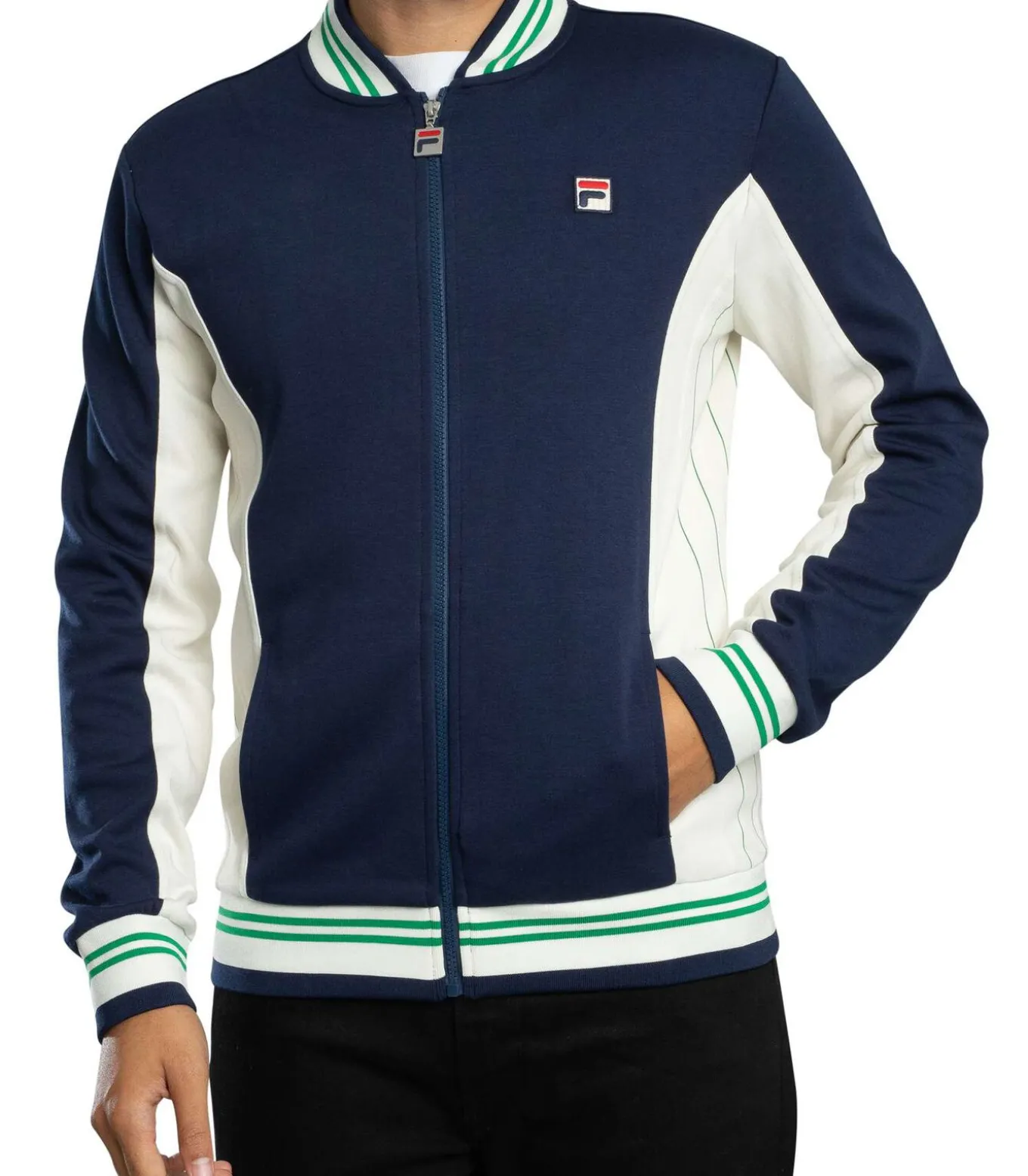 Fila presenteert het Settanta Baseball Track Jacket in marineblauw, gardenia en groen, een combinatie van een klassiek atletisch design en een praktische constructie. Het geborduurde logo op de borst, de rits met merklogo en de open zakken benadrukken het casual karakter, terwijl de geribbelde manchetten, zoom en kraag het jack structuur geven. Retrokleuren maken dit Fila jack tot een opvallend laagjesitem.