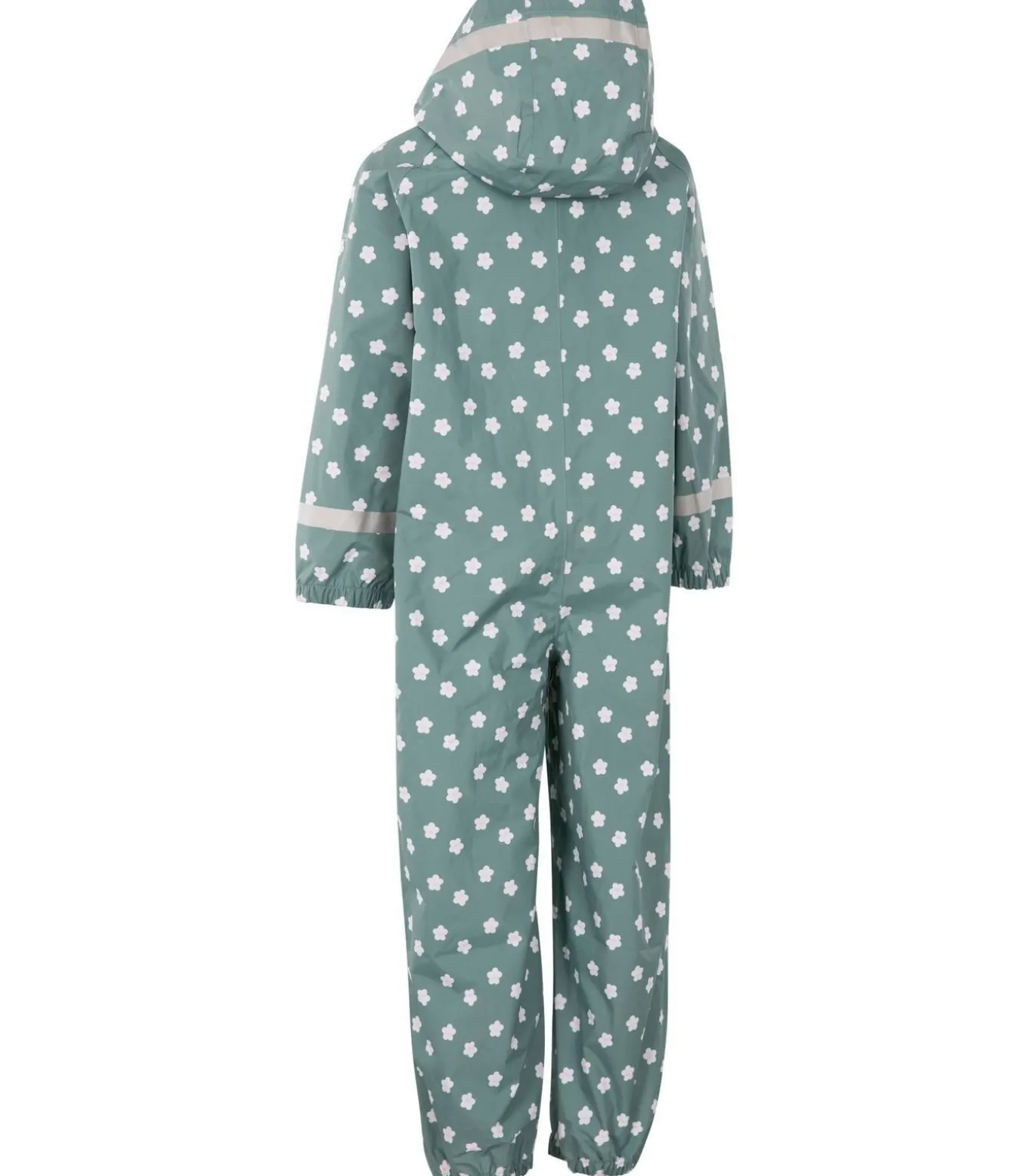 Trespass Showery – Regenpak Lichtgroen is een waterdichte en winddichte regenjas met all–over print van bloemen en het logo van de merk. Deze jas wordt gemaakt van 100% polyester met PVC–coating, en heeft elastische manchets en enkels met reflecterende bandjes voor meer veiligheid op de weg. De halslijn is uitgerust met een kapitein om het bijpassen makkelijker te maken. De jas heeft twee zakken, die gesloten kunnen worden met een trekkoord of ritssluiting. De waterdichtheid van de jas bedraagt 2000mm en is geschikt voor gebruik in het regenseizoen. Bij gebruik van deze jas wordt aangeraden om de lengte over de tijd te laten groeien, omdat dit de comfort verbetert. De jas behoort bij personen tussen 2–3 jaar met een lichaamslengte van 21 in, personen tussen 3–4 jaar met een lichaamslengte van 22 in en personen tussen 5–6 jaar met een lichaamslengte van 24 in.