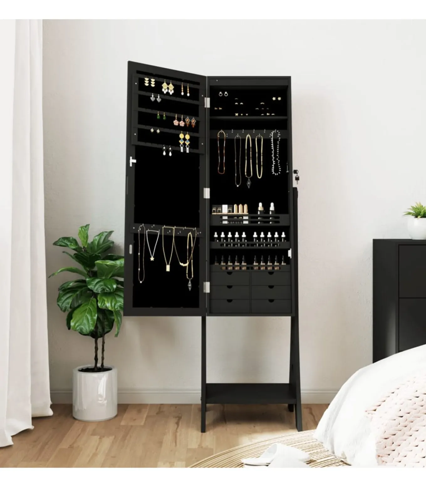 Voldoende opbergruimte: de spiegel met opbergruimte heeft 6 lades en veel haakjes, hangers en plankjes om je sieraden netjes geordend en binnen handbereik te houden.