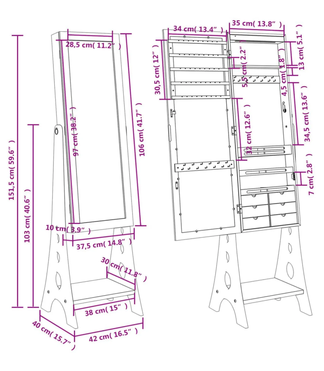 Vrijstaand ontwerp: deze vrijstaande sieradenopberger kan eenvoudig overal in je slaapkamer, woonkamer of waar je maar wilt worden geplaatst. En de basis met 2 poten houdt deze sieradenspiegel in balans en stabiel, zelfs wanneer hij van binnen volgeladen is.