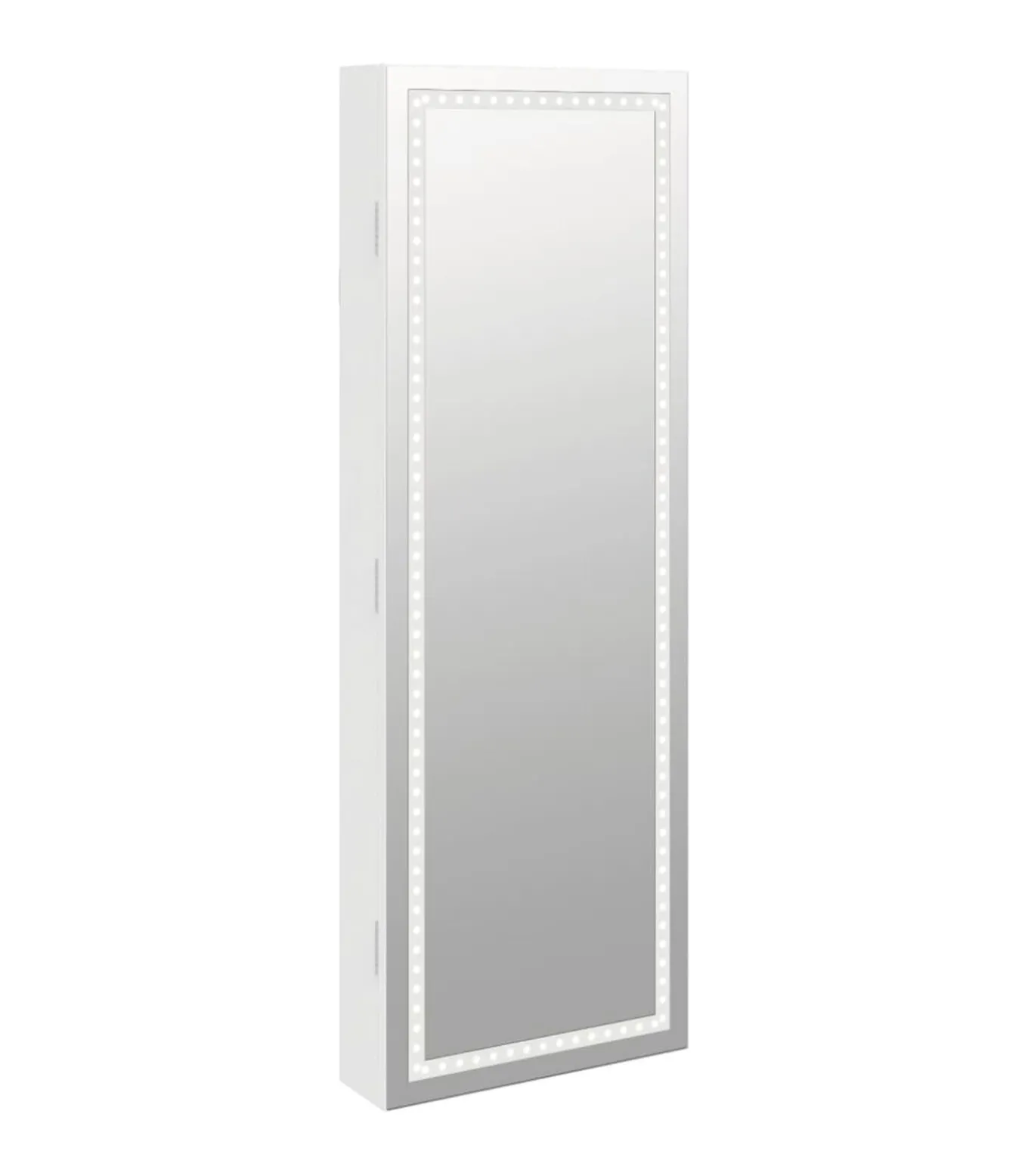 Voldoende opbergruimte: de spiegel met opbergruimte heeft veel haakjes, hangers en plankjes om je sieraden netjes geordend en binnen handbereik te houden.